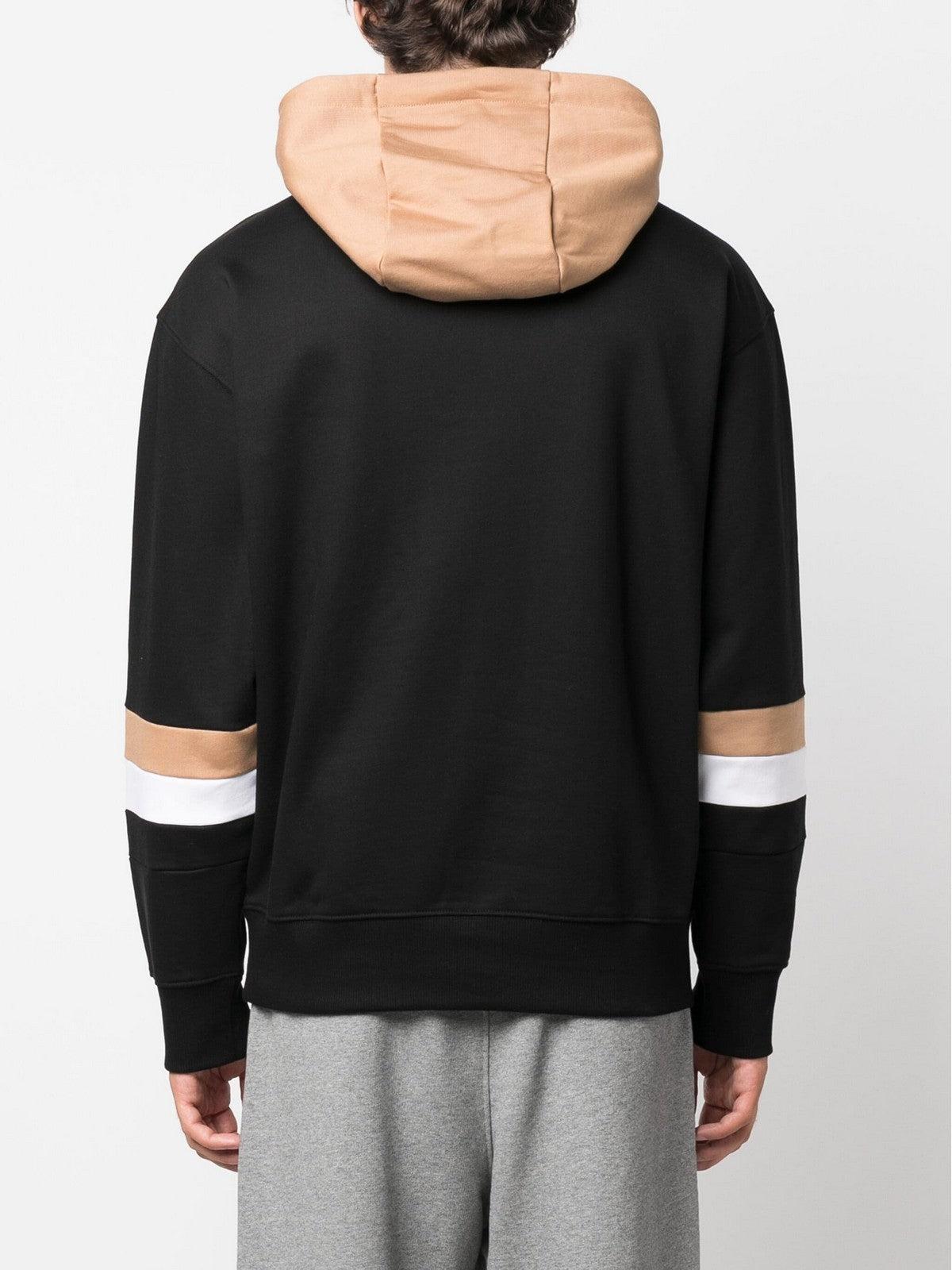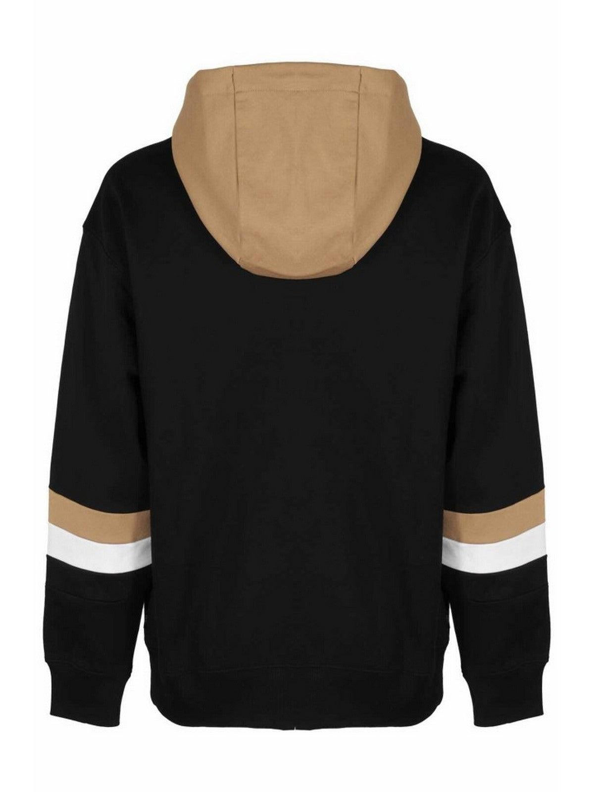 Felpa HUGO BOSS in cotone. Dettagli di righe a contrasto colore sulle maniche. Collo con cappuccio di colore beige regolabile con coulisse. Maniche lunghe con polsi a coste. Tasca a marsupio.