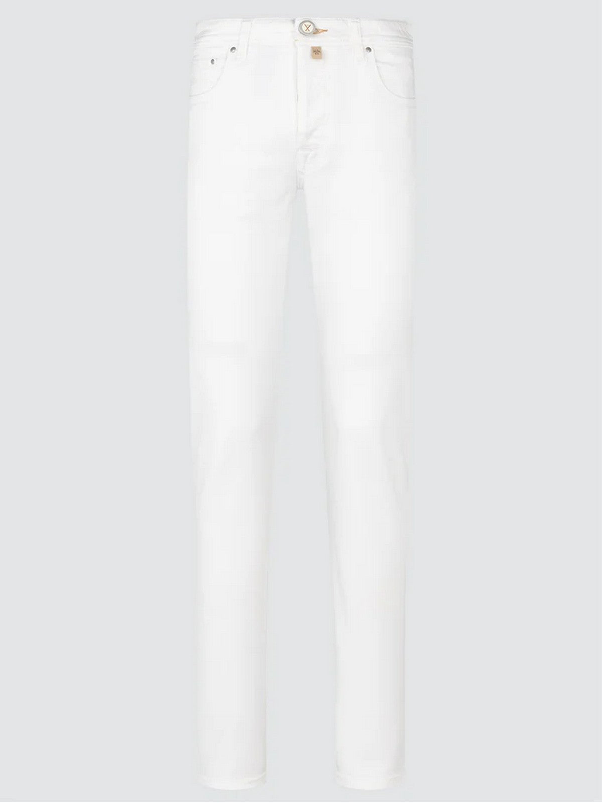 Jeans JACOB COHEN in denim bull stretch di cotone bianco con lavaggio enzimatico, effetto bleach ottico e texture morbida (9 once)