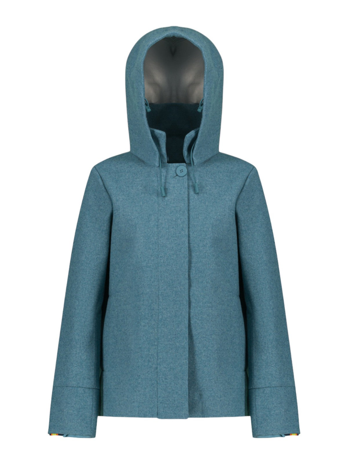 Cappotto donna K-WAY realizzato in lana con membrana interna argento impermeabile, idrorepellente, antivento.