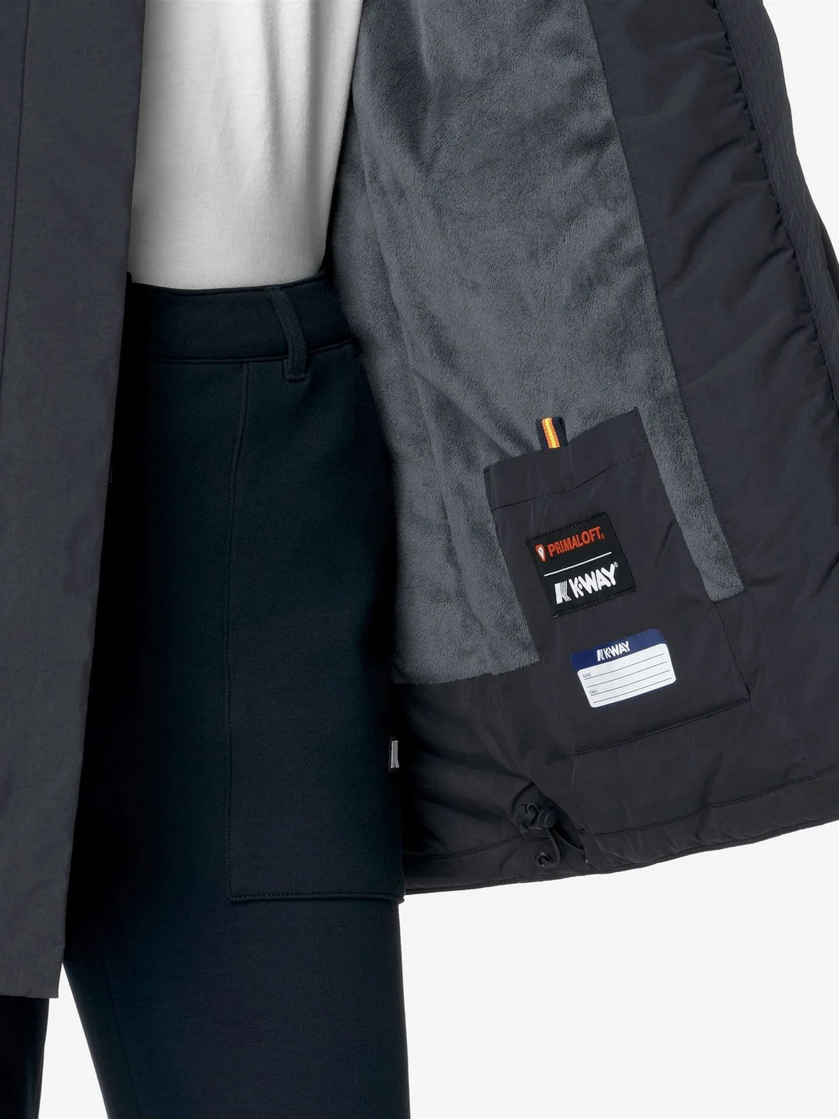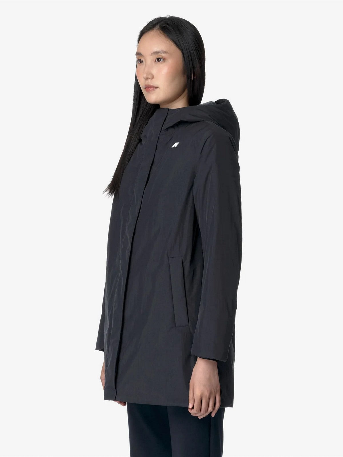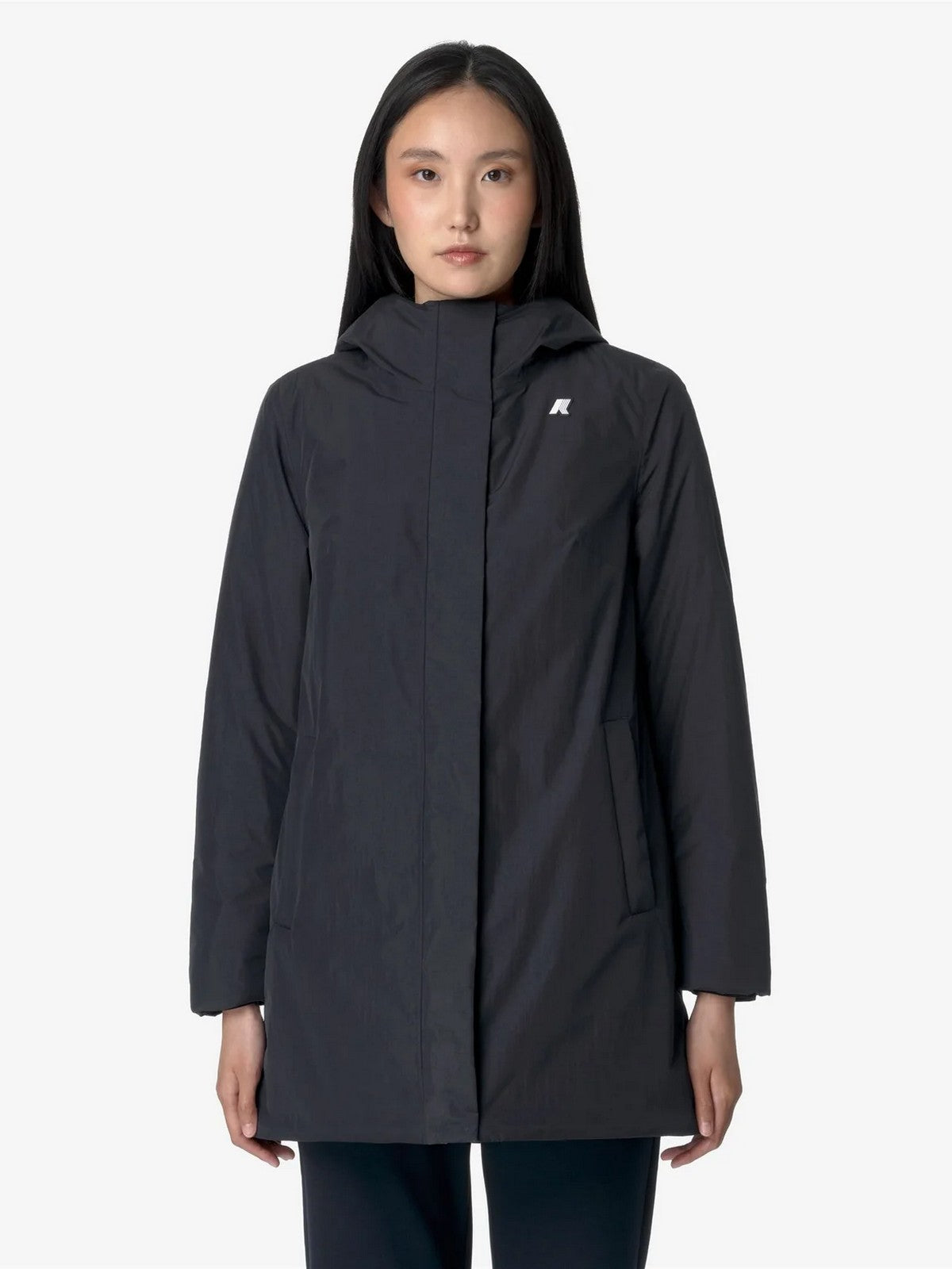 Giubbino K-WAY Sophie di media lunghezza che si caratterizza per la linea slim, realizzato in un tessuto morbido e performante con la classica fodera in tessuto soffice.