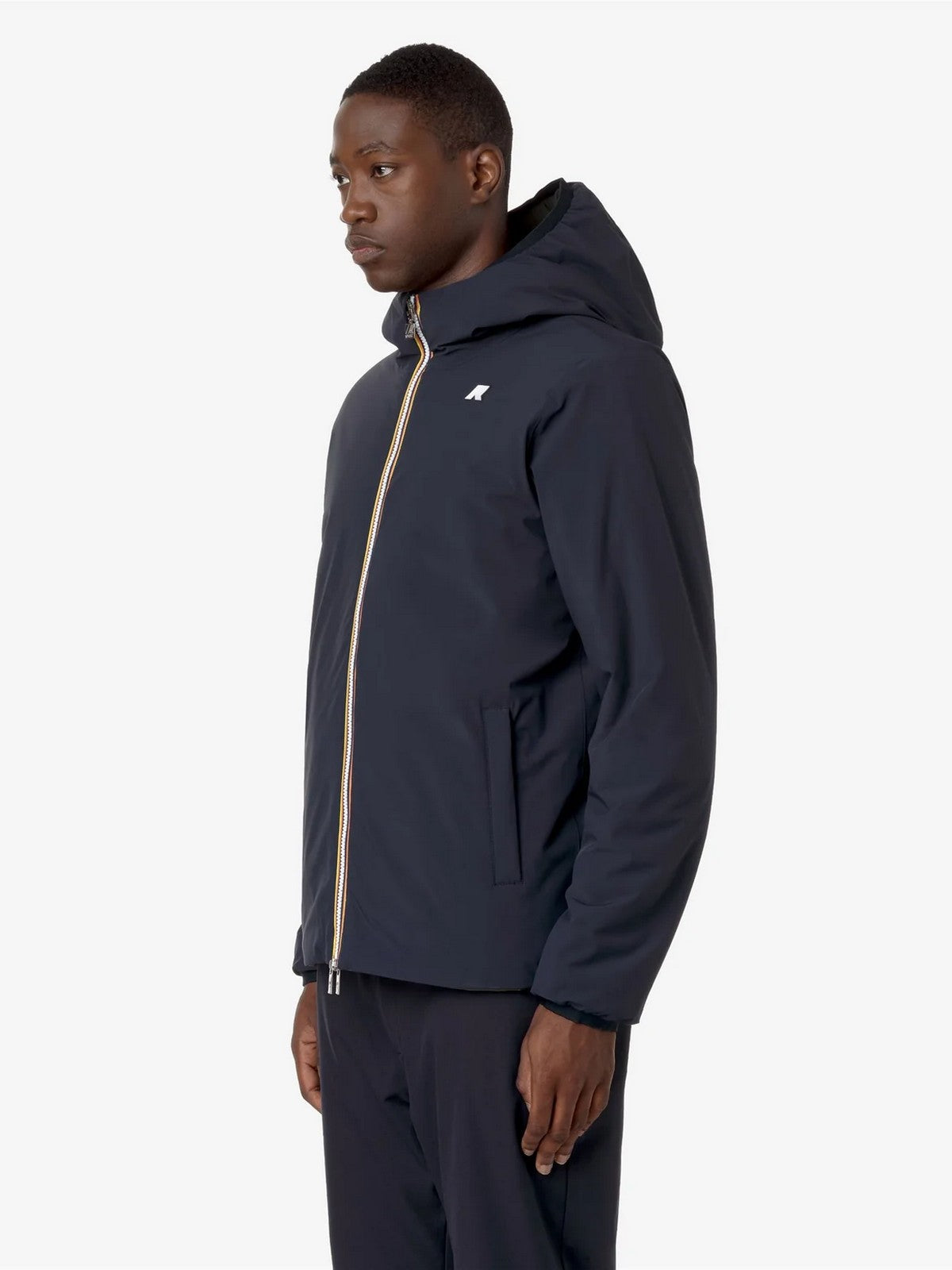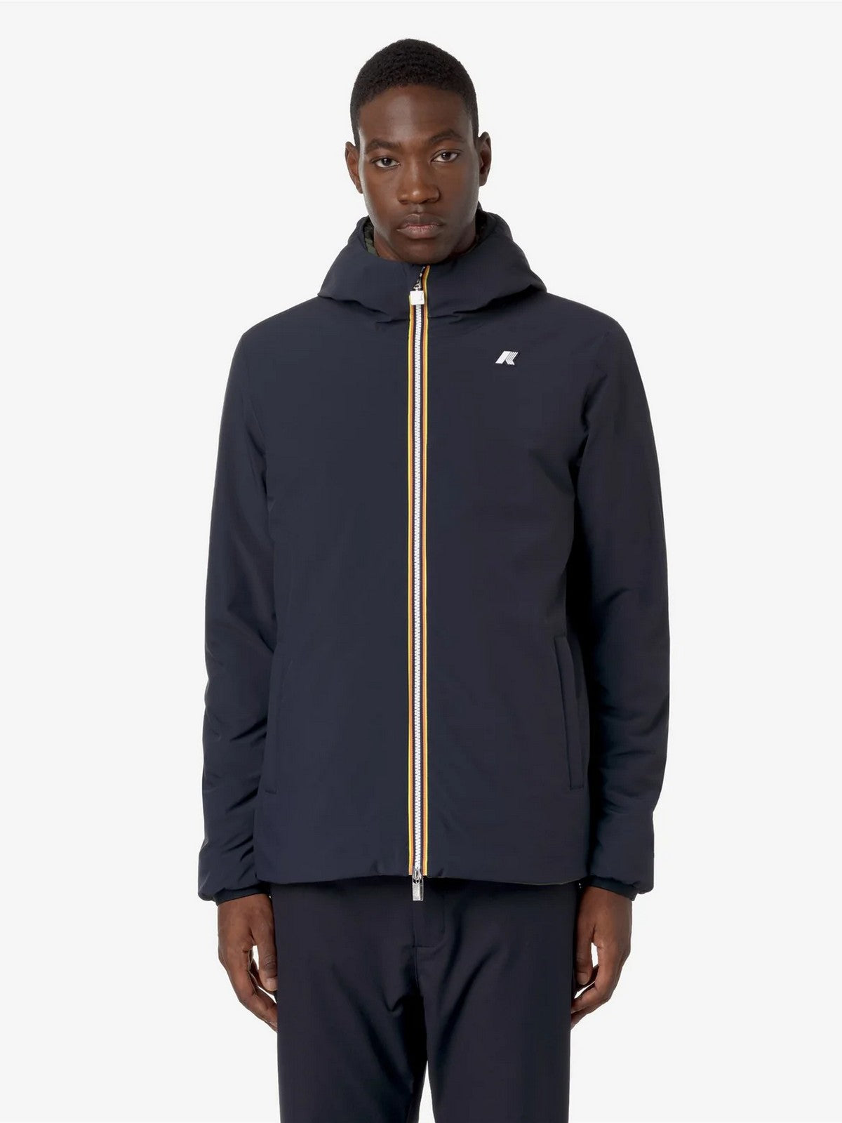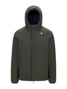 Giubbino K-WAY reversibile, combina un lato in poliestere elasticizzato impermeabile e un lato in poliestere antivento dal colore a contrasto.