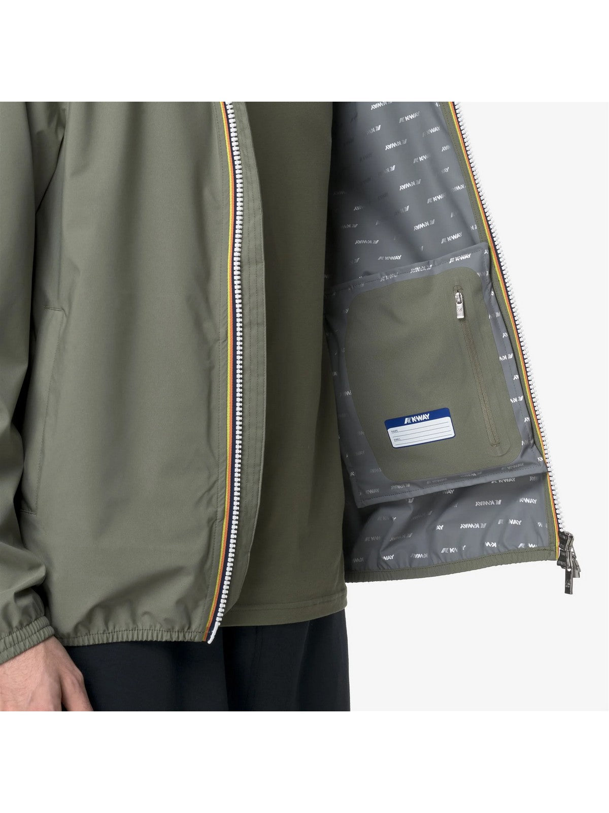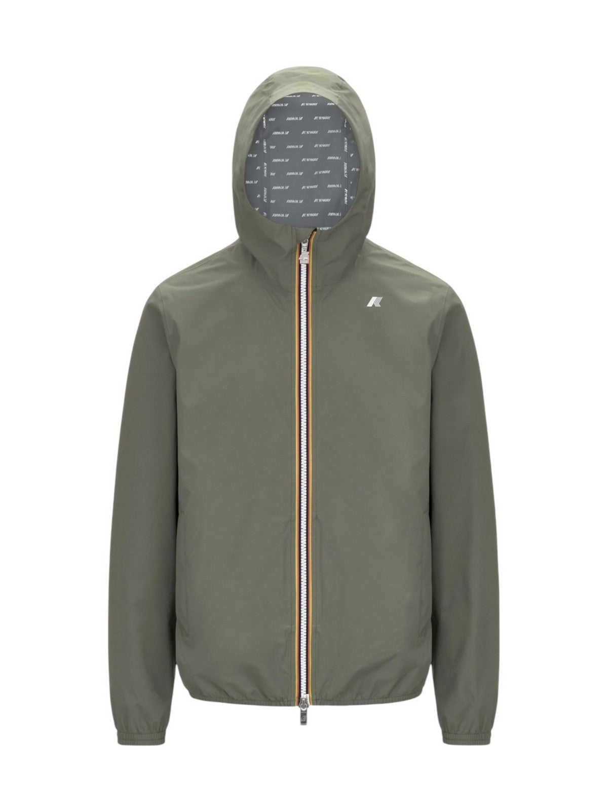 Giubbino K-WAY Jack da uomo ideale per le mezze stagioni e con vestibilità slim, realizzata in tessuto tecnico elasticizzato. L'interno è foderato con una membrana isolante decorata con lettering K-Way stampato all over in tonalità argento.