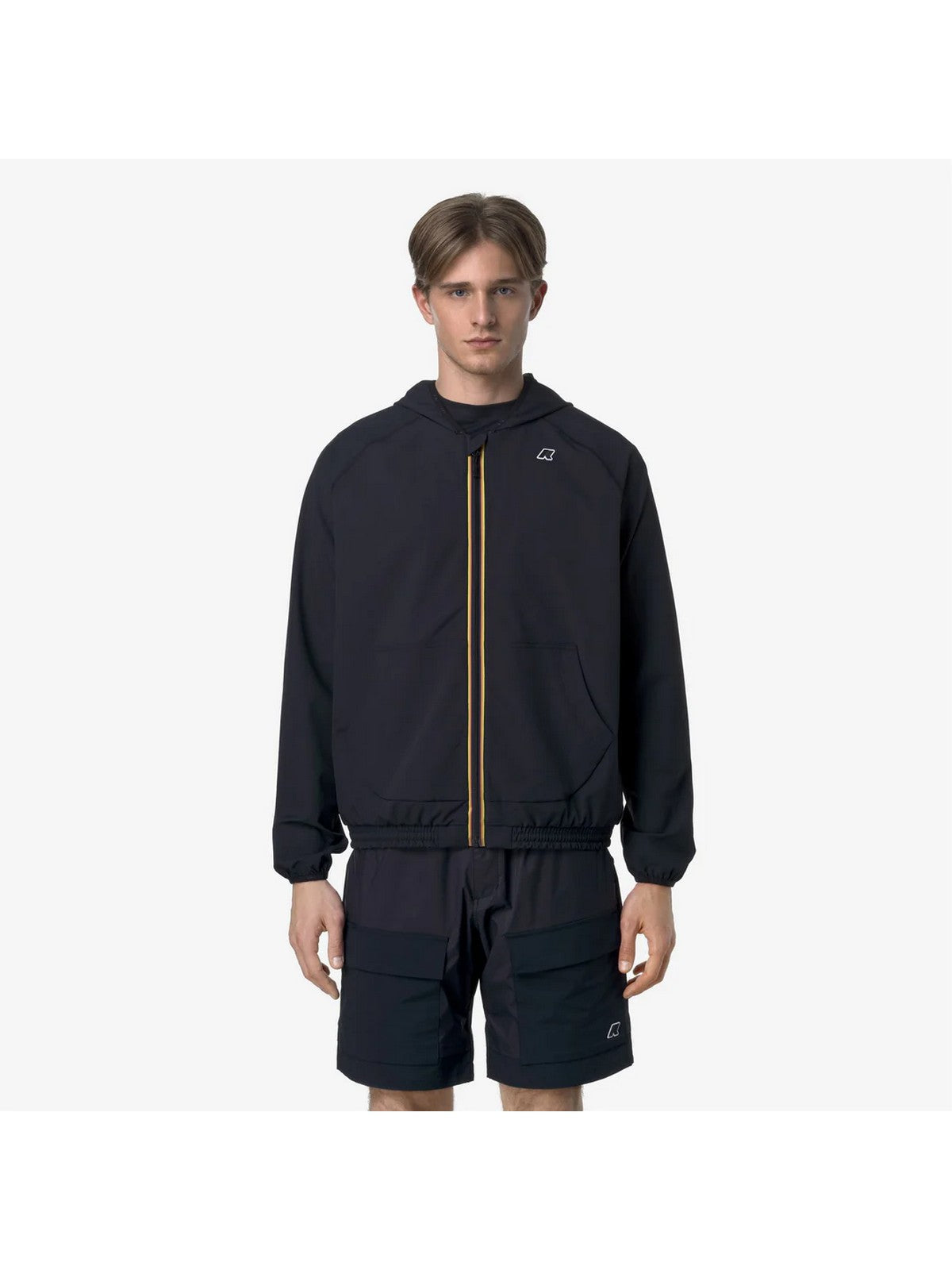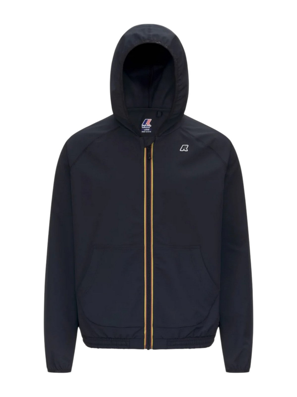 Giubbino K-WAY da uomo realizzato in tessuto in felpa leggerissima in poliestere elasticizzato.