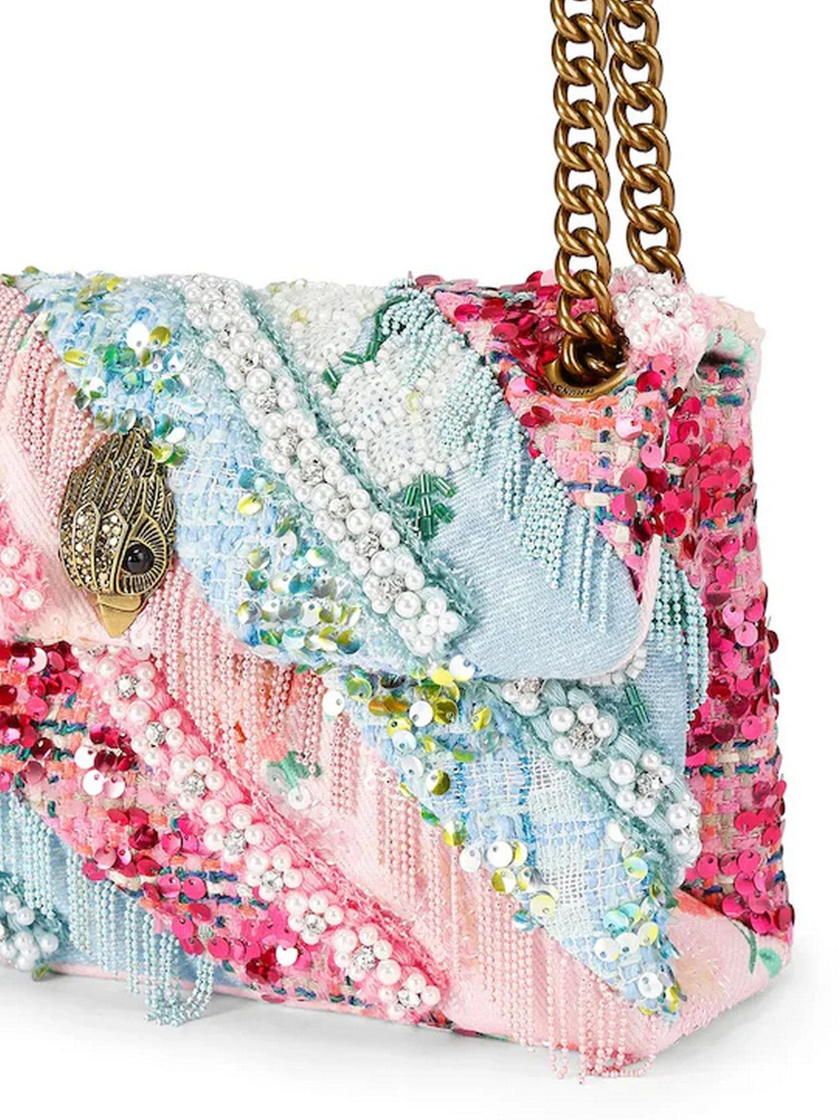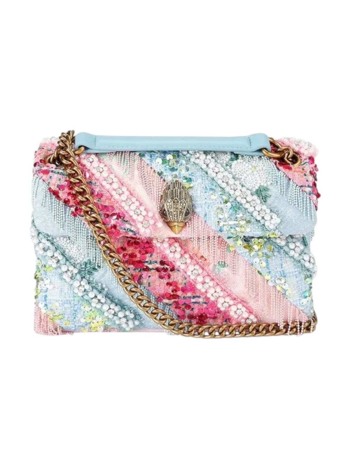 Borsa Kurt Geiger London realizzata in materiale tessile con applicazione.