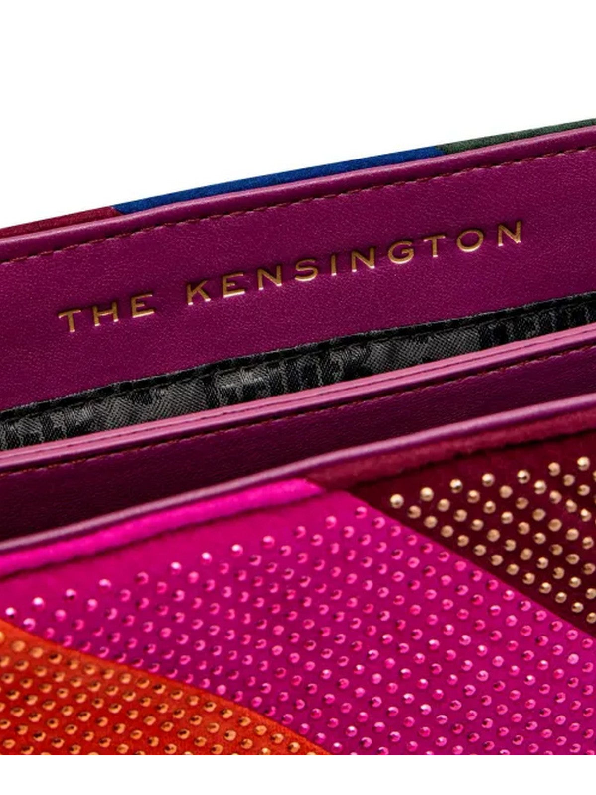 Borsa KURT GEIGER realizzata in tessuto scamosciato multicolore con strass applicato all-over. La testa d'aquila in ottone anticato è impreziosita da cristalli opachi in ottone e occhi in cristallo nero sulla patta frontale.