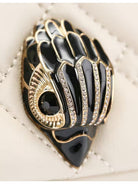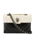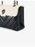 Borsa KURT GEIGER Kensington realizzata in pelle nera e osso con impunture che combinano motivi intrecciati e chevron. La testa d'aquila in smalto nero è posta sulla patta frontale.