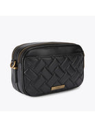 Borsa KURT GEIGER Mini Kensington realizzata in pelle nera con impunture imbottite effetto parquet.