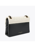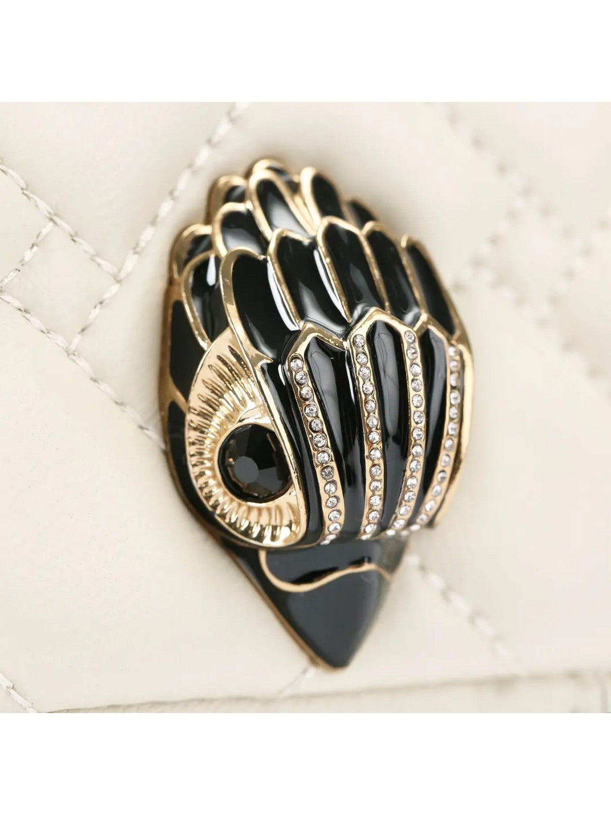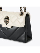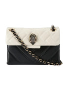 Borsa KURT GEIGER Mini Kensington realizzata in pelle nera e osso con impunture che combinano motivi intrecciati e chevron. La testa d'aquila in smalto nero è posta sulla patta frontale.