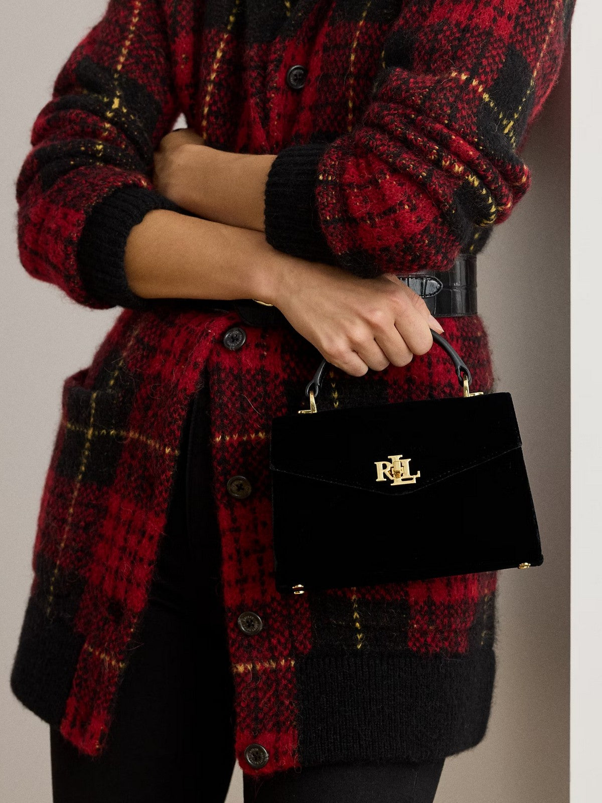Borsa LAUREN RALPH realizzata in sontuoso velluto con finiture in morbida pelle pieno fiore ed è dotata di un'esclusiva chiusura a girello.