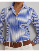 LAUREN RALPH LAUREN Camicia Donna JAMELKO-LONG SLEEVE-BUTTON FRONT SHIRT 200970765 001 LAPIS BLUE/WHITE