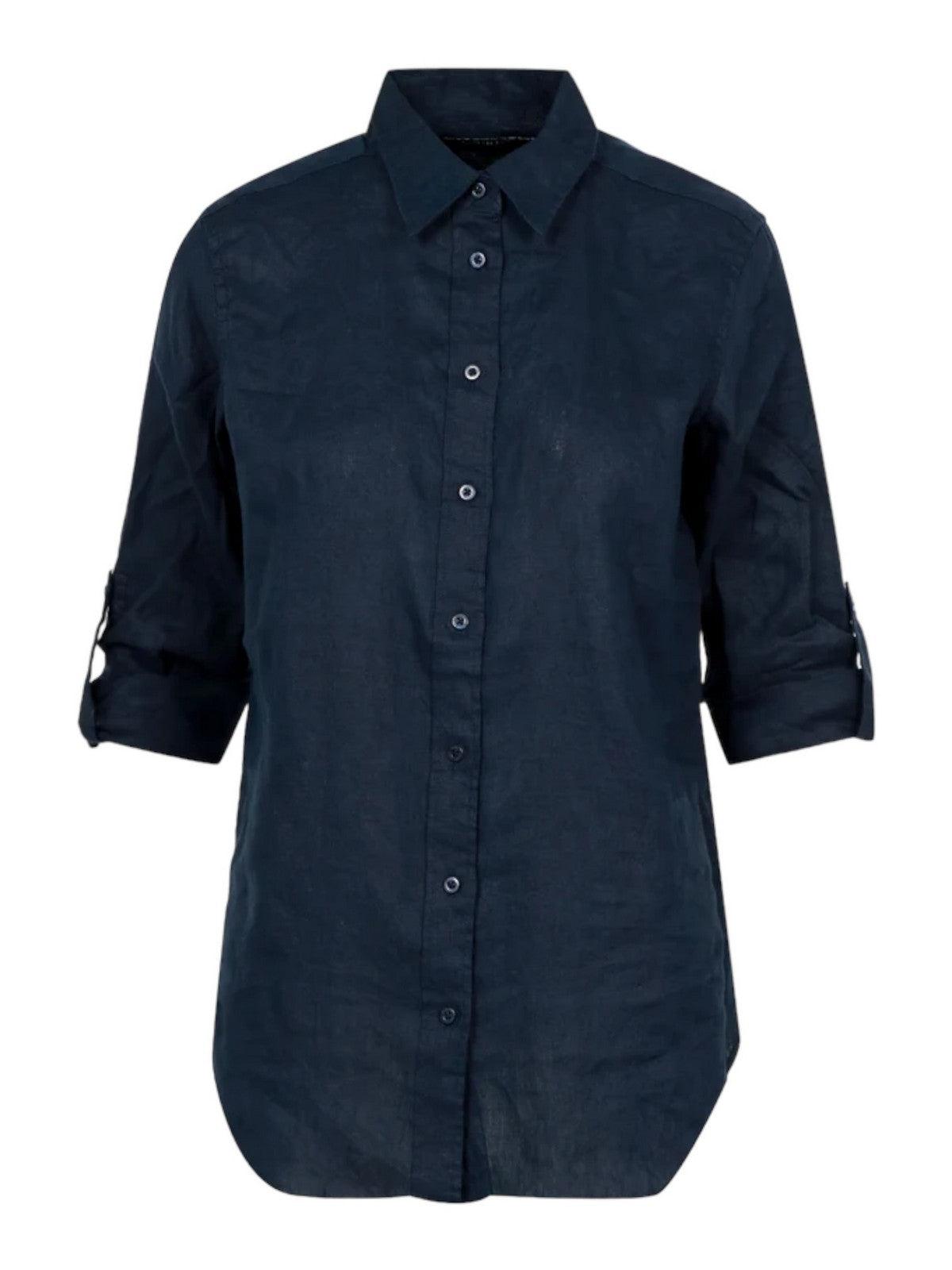 Camicia LAUREN RALPH LAUREN realizzata in lino. Con maniche lunghe e polsini con bottoni. Collo a punta. Cannoncino con bottoni al centro sul davanti. Carré posteriore con pieghe a cannoncino. Taglio morbido e comodo. Lunghezza ai fianchi.