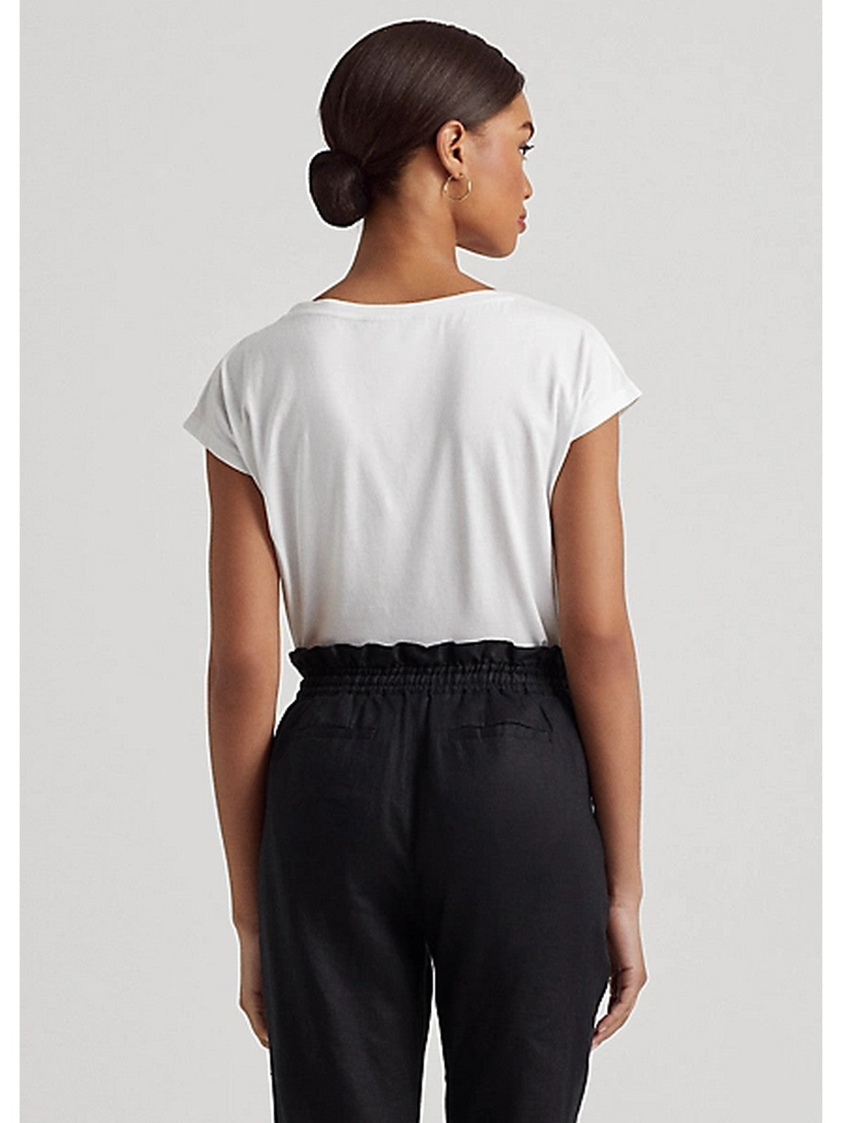 T-shirt RALPH LAUREN realizzata in morbido misto cotone con Scritta "Polo RL" oversize stampata al centro sul davanti a contrasto colore. Scollo a barchetta.