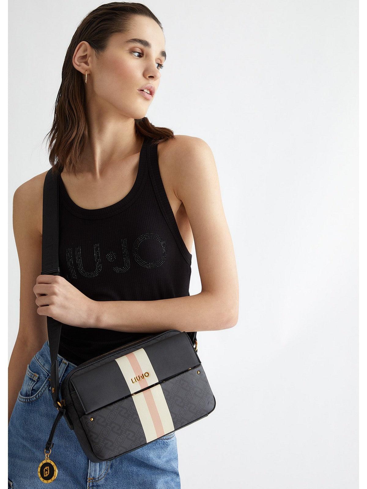 Borsa a tracolla LIU JO realizzata in similpelle. Motivo logo a catena stampato all over e righe stampate sul davanti. Logo in metallo sul davanti. Tracolla logata regolabile in gros grain.