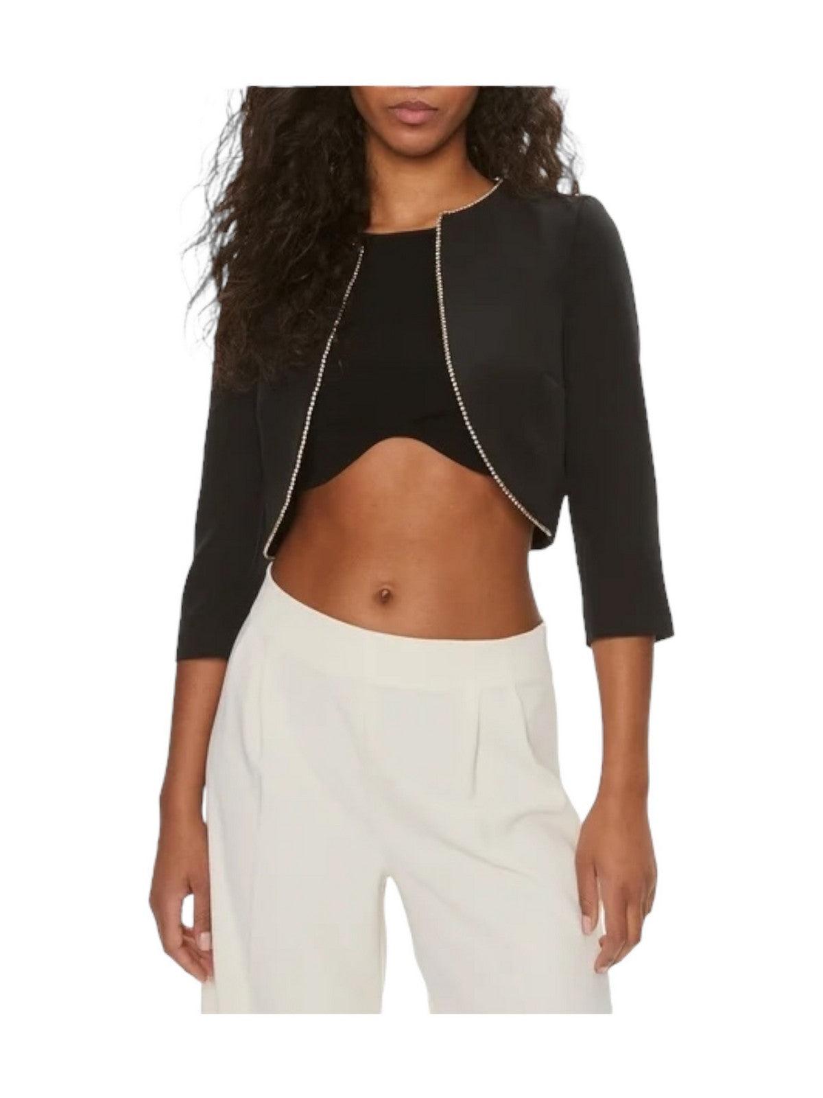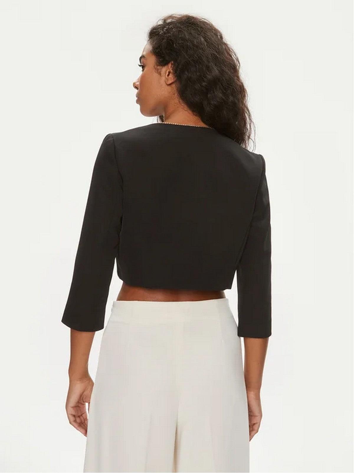 Giacca cropped LIU JO tinta unita con strass applicati su orli. Collo a giro e maniche 3/4. Senza chiusura.