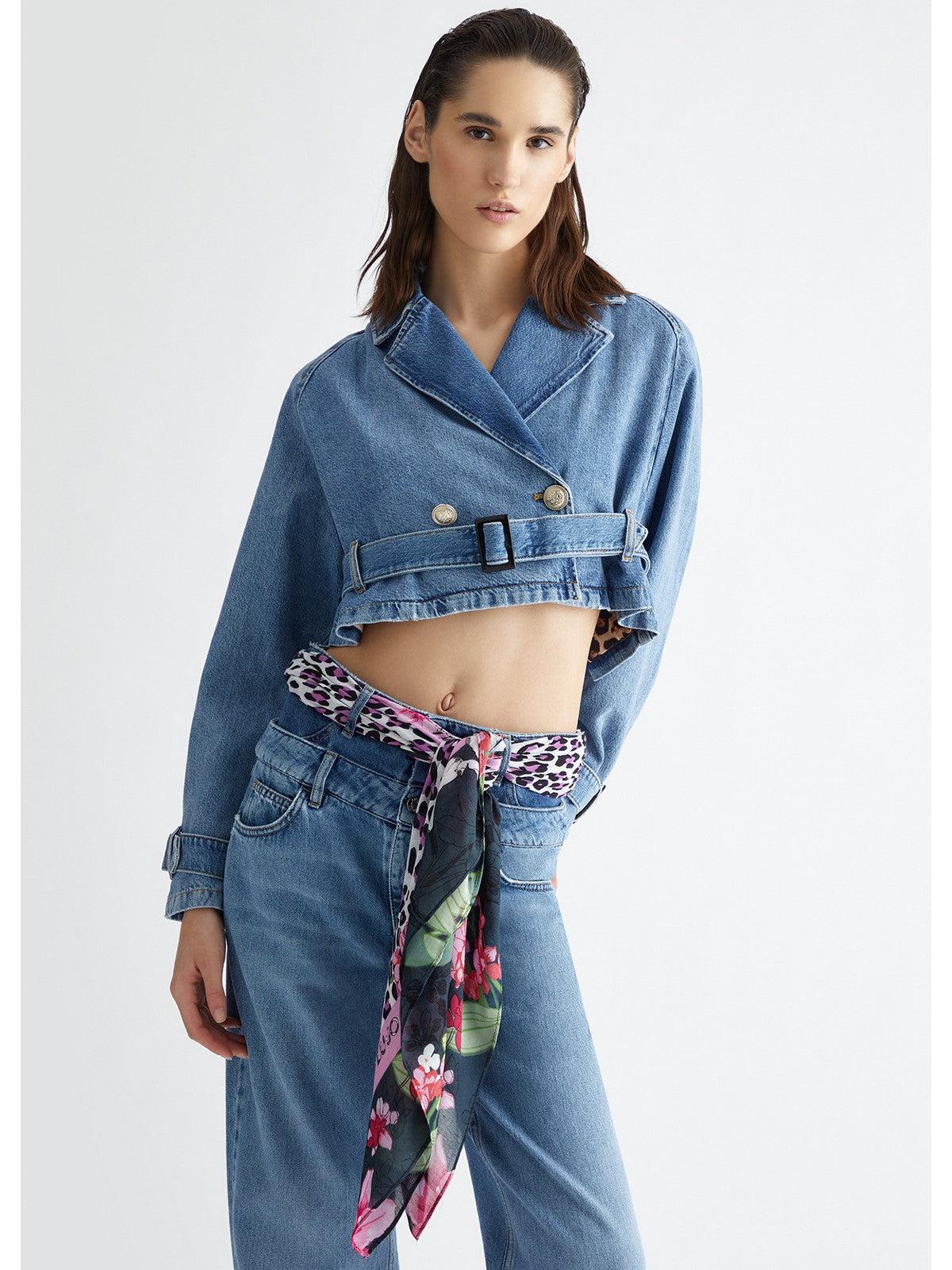 Foulard LIU JO in tessuto con fibre di bamboo. Stampa floreale animalier con logo.