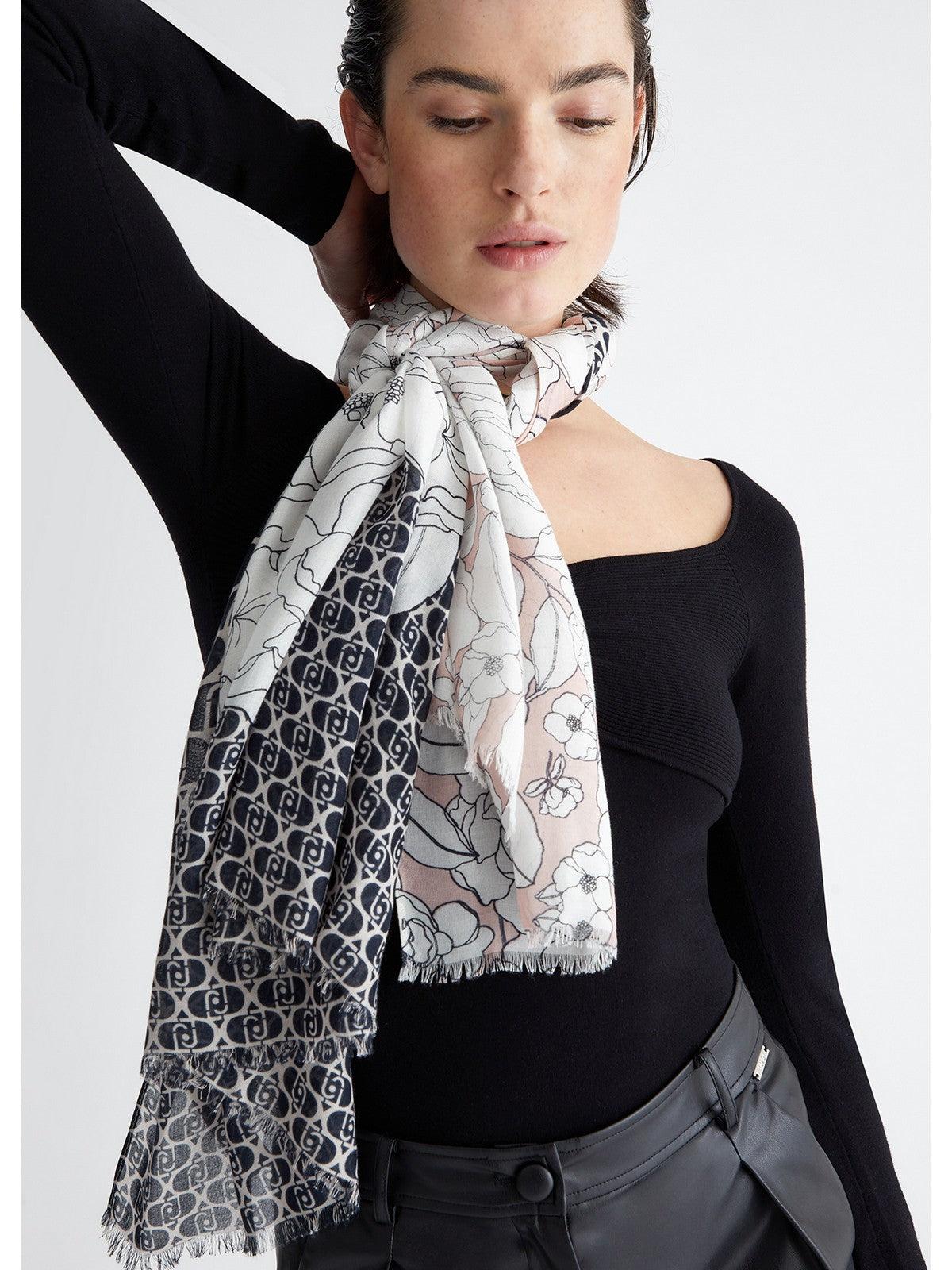 Stola LIU JO in tessuto BLOSSOM con fibre di bamboo. Stampa floreale e logo monogram all over.