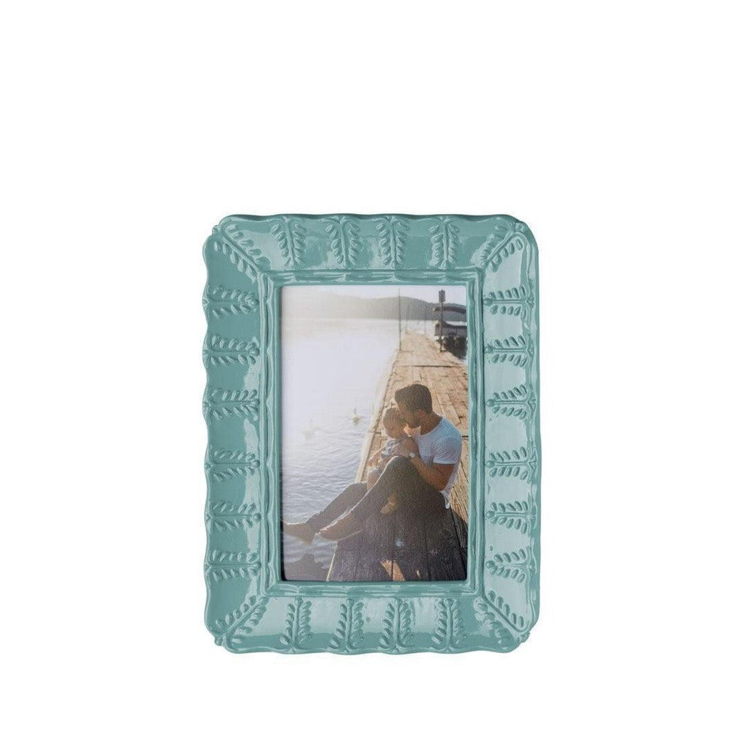 Portafoto rettangolare in resina. Grazie al motivo fogliato e al colore d'impatto, questa cornice è perfetta per gli amanti di un arredamento allegro e coinvolgente. Disponibile anche versione grande.