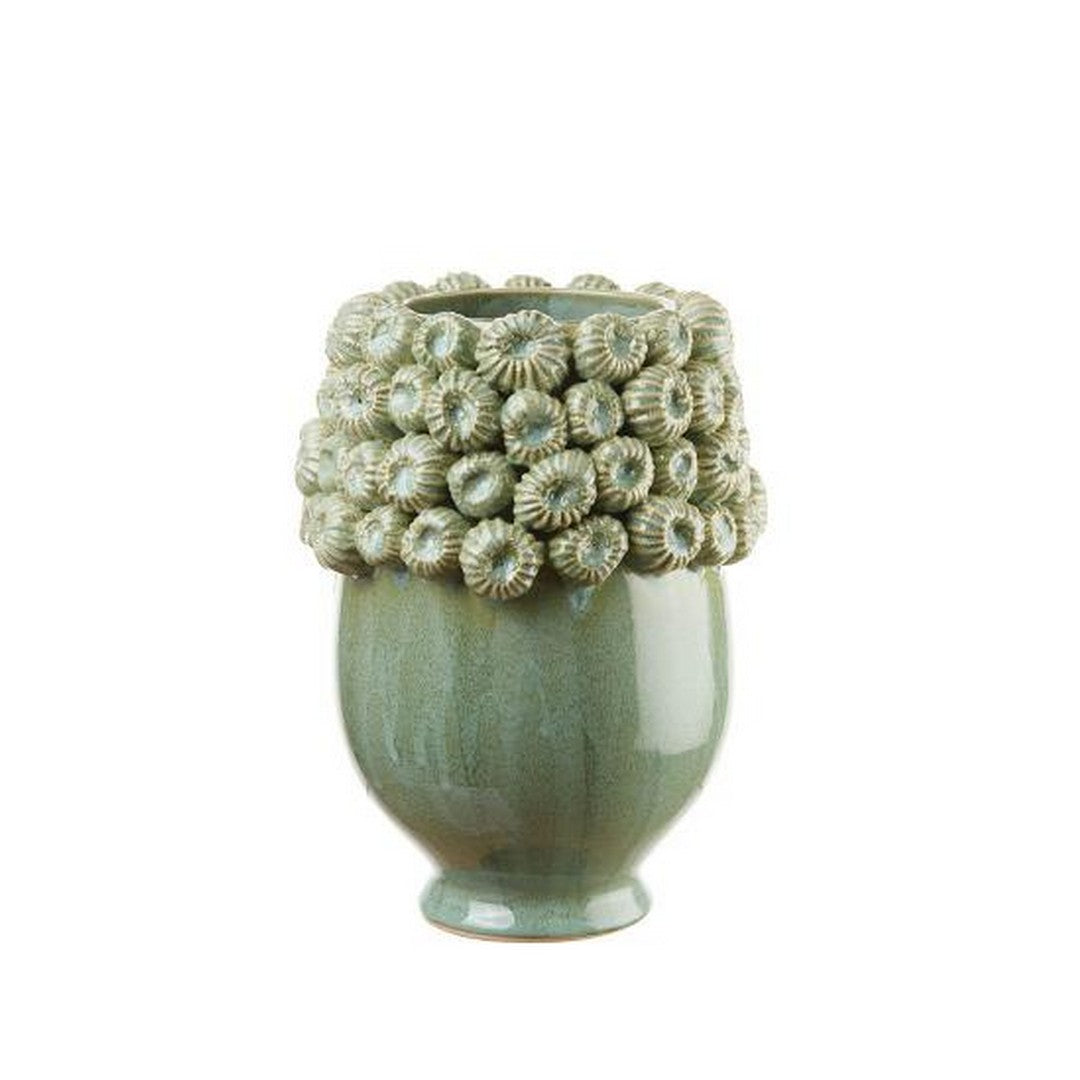 Vaso alto in ceramica. I suoi dettagli in rilievo sul collo si ispirano alle forme floreali. Da abbinare al vaso baasso dell'ispirazione Modern Country per impreziosire gli ambienti conviviali.