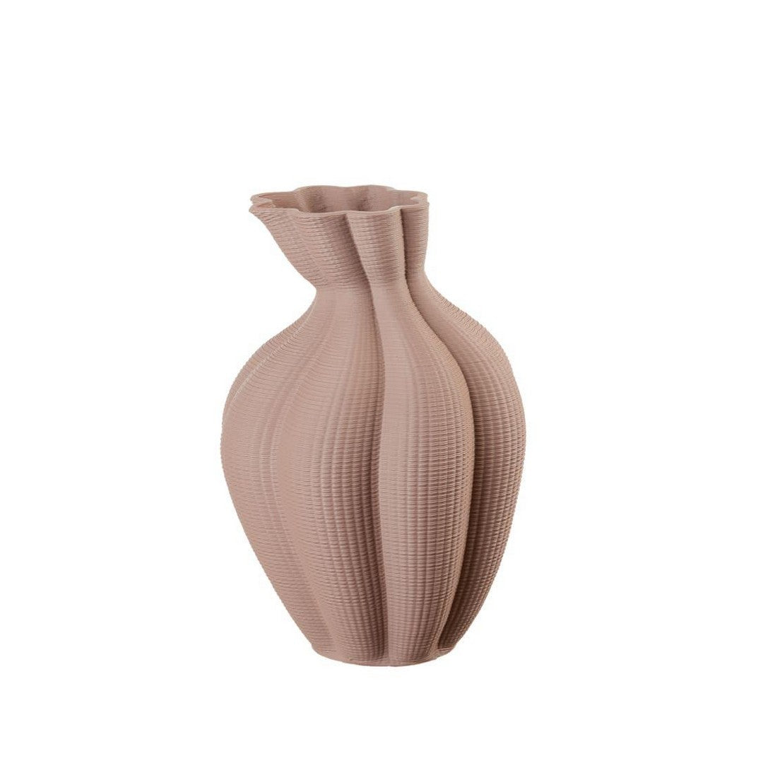 Vaso basso in porcellana. Si distingue per la sua forma sinuosa, che evoca la fluidità e la morbidezza delle linee femminili, creando un delicato gioco di luci e ombre. Da abbinare al vaso alto coordinato dell'ispirazione Neo classic per un living dal design ricercato.