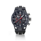 La cassa da 44 mm in acciaio e titanio con trattamento PVD nero conferisce robustezza, leggerezza e un look profondamente moderno. Il quadrante nero è arricchito da indici bianchi, scala tachimetrica, funzione cronografo, calendario e datario, garantendo leggibilità e funzionalità in ogni situazione. Il tutto è protetto da un vetro minerale antigraffio con trattamento zaffiro, resistente a urti e graffi.