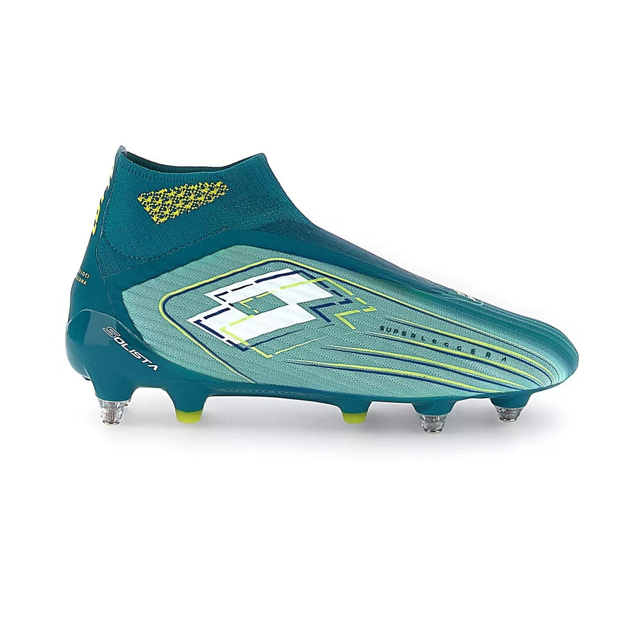 Scarpe da calcio Lotto modello SOLISTA 100 VII GRAVITY SGX . Lotto Solista 100 VII Gravity SGX è la scarpa da calcio Lotto senza lacci per giocatori veloci. La tomaia è realizzata in un materiale knit 3D monopezzo per offrire la massima leggerezza, aerodinamica e controllo di palla. Calzino elasticizzato Ergo Tongue per il massimo comfort e vestibilità e rinforzo alla caviglia posizionato nella zona del calzino per sostenere qualsiasi movimento del piede e fornire comfort e supporto totali. Fodera interna in microfibra premium con morbido memory foam nella zona del tallone. Suola in Nylon PA 12 per flessibilità, reattività e leggerezza ottimali grazie allo spessore ridotto della suola. Costruzione della suola Puntoflex studiata per permettere al piede di flettersi correttamente e dare un ottimo ritorno elastico. Tacchettatura mista. Il dettaglio nella zona frontale rende omaggio ai 50 anni di LOTTO . Questa scarpa è consigliata per un uso professionale e suola pensata per adattarsi perfettamente ai terreni morbidi o fangosi. Ideale per campi in erba naturale bagnati. Salbini articoli tecnici per lo sport è rivenditore ufficale Lotto .