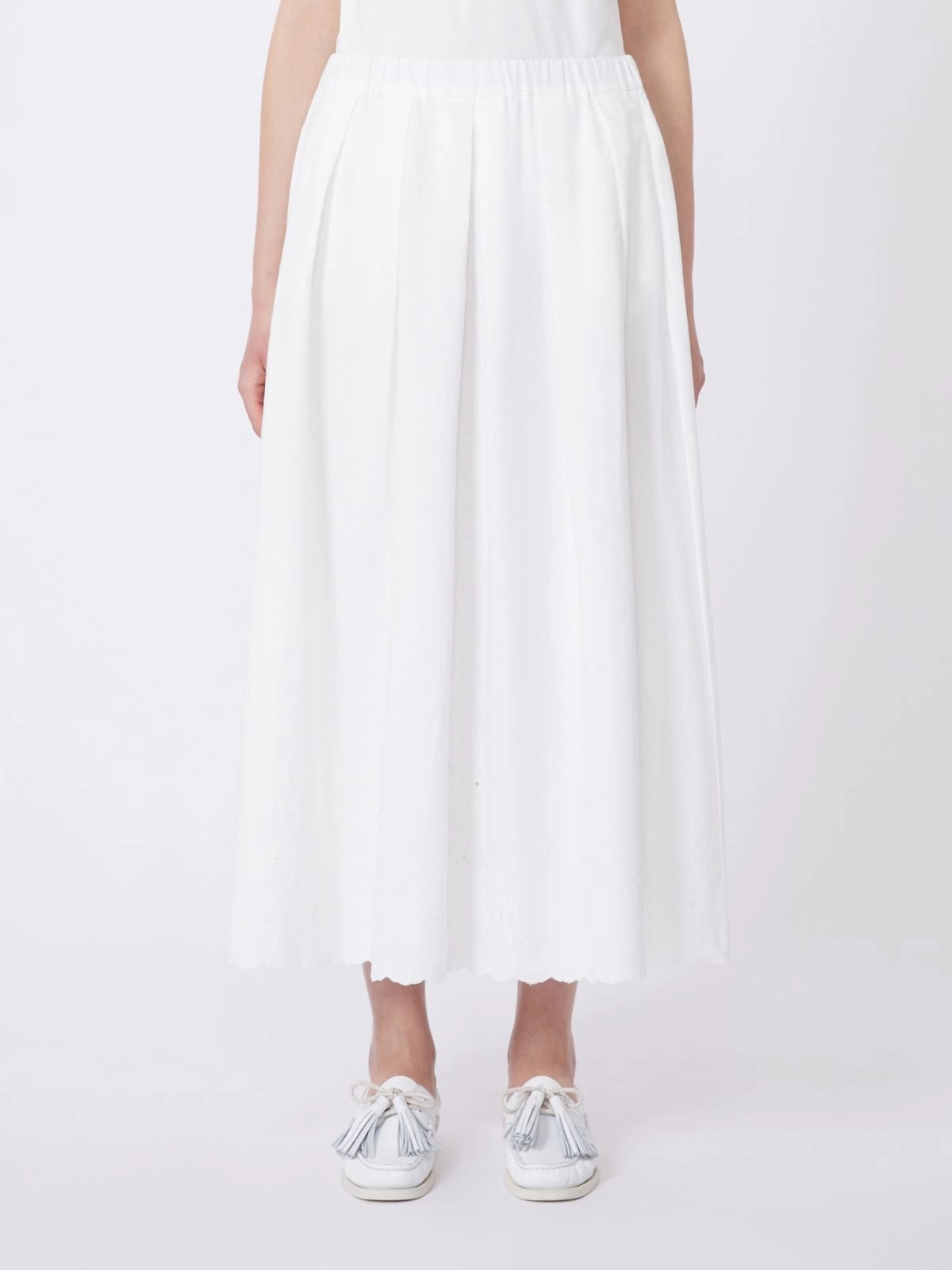 Gonna lunga MAXMARA A-line in tela di misto cotone e lino, impreziosita da ricamo Sangallo sul fondo e bordo smerlato.