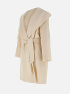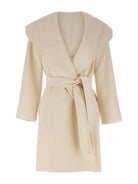 Cappotto midi a vestaglia MAXMARA in doppio drap di pura lana, caratterizzato da cappuccio ampio e linea avvolgente.