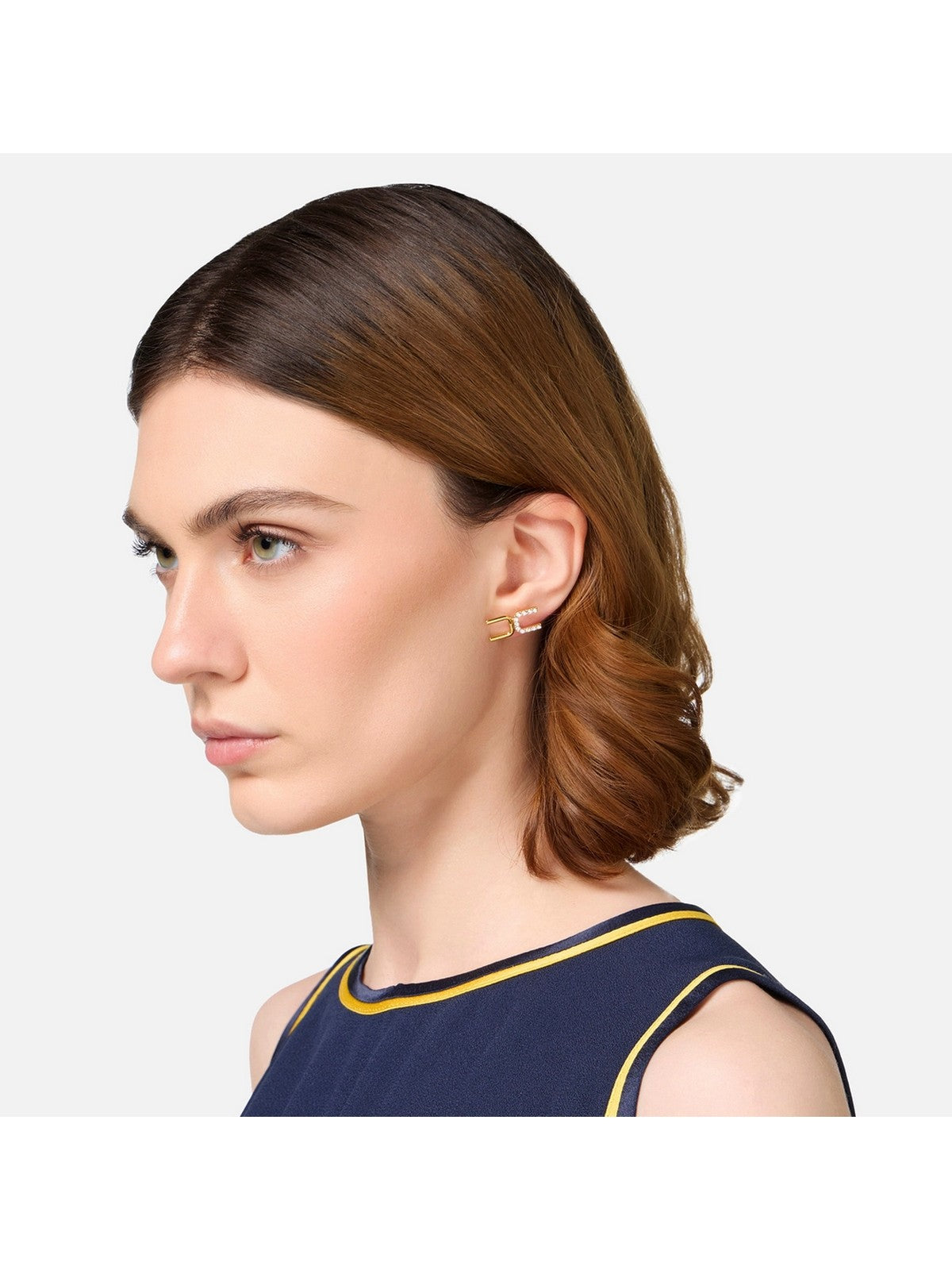 Orecchini ELISABETTA FRANCHI con logo in metallo dorato e strass.