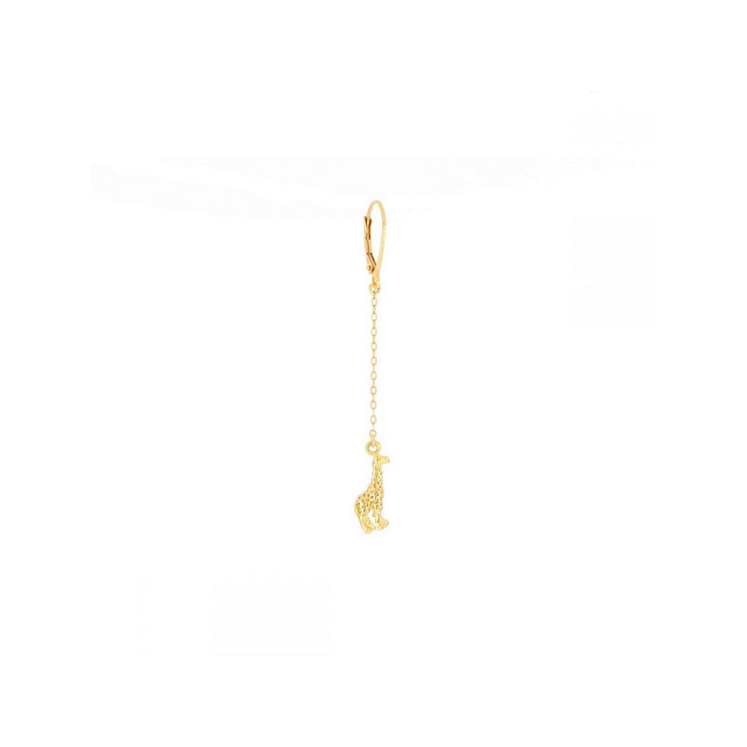 Orecchino a monachella in argento 925 con galvanica oro giallo ad alto spessore e resistenza. L'orecchino presenta una giraffa pendente galvanizzata oro giallo. Lunghezza totale dell'orecchino 60 mm.