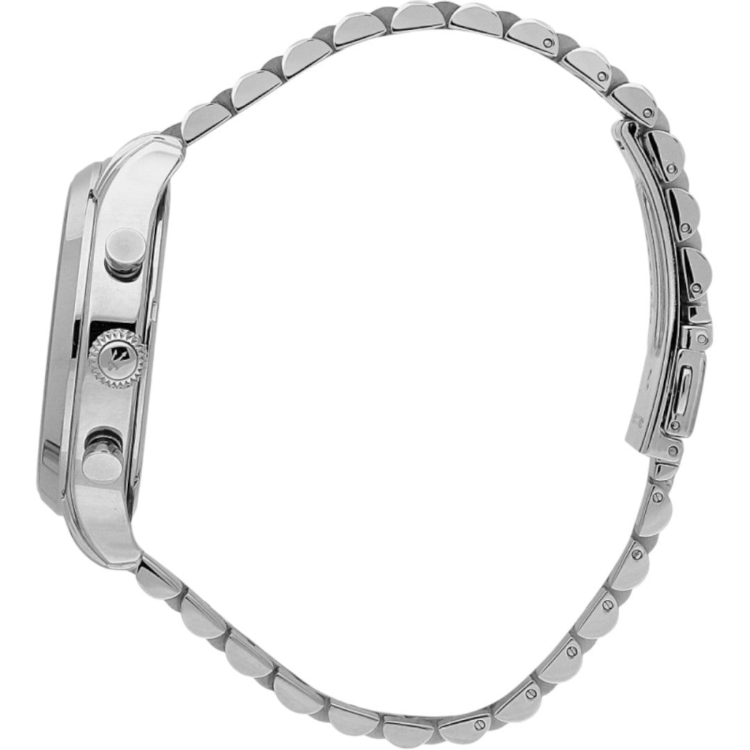 Orologio Maserati cronografo da Uomo della collezione Epoca con movimento al quarzo, cassa 42 mm in acciaio inox e quadrante analogico bianco con indici e lancette blu - Vetro minerale - Il cinturino è in acciaio inox con finitura lucida e satinata e monta una chiusura deployante con doppio pulsante - Il fondello e la corona sono a vite per una maggiore garanzia di impermeabilità - Orologio impermeabile a 10 ATM, quindi è adatto per il nuoto e le immersioni, ma non è adatto per le immersioni con pressione.