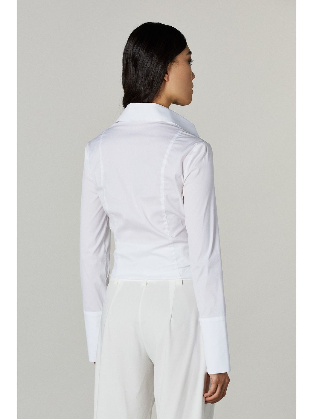 Camicia Patrizia Pepe in cotone popeline stretch. Chiusura con bottoni dello stesso colore. Polsini alti con spacchetti e detaglio fly. Vestibilità slim. Tessuto principale: 67% Cotone, 27% Poliammide, 6% Elastan