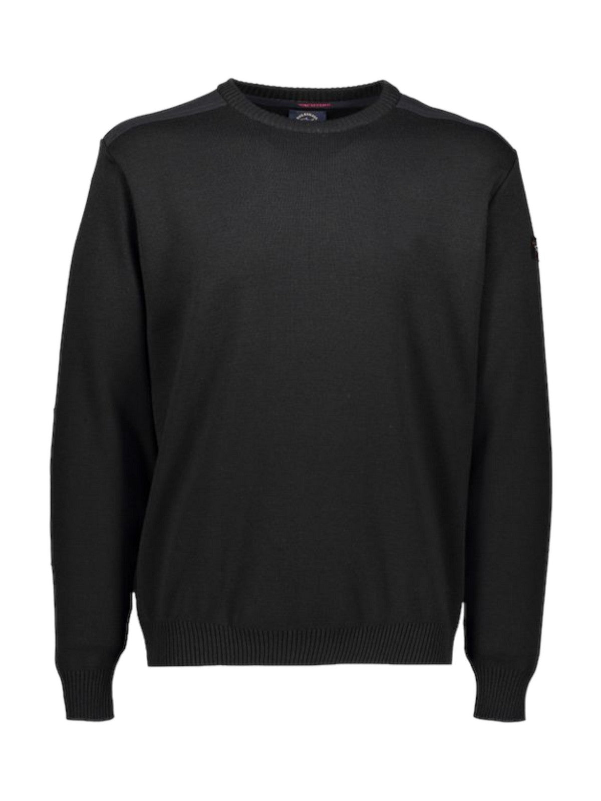 Maglione PAUL&SHARK in misto lana. Collo a giro e maniche lunghe con inserti in tessuto tecnico. Patch Paul&Shark Heritage sulla manica.