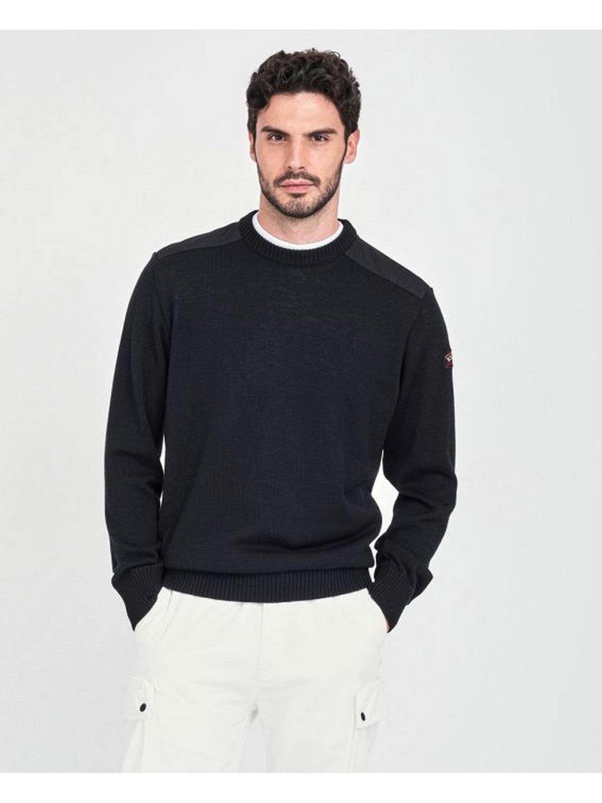 Maglione PAUL&SHARK in lana. Collo a giro e maniche lunghe con inserti in tessuto tecnico. Patch Paul&Shark Heritage sulla manica.