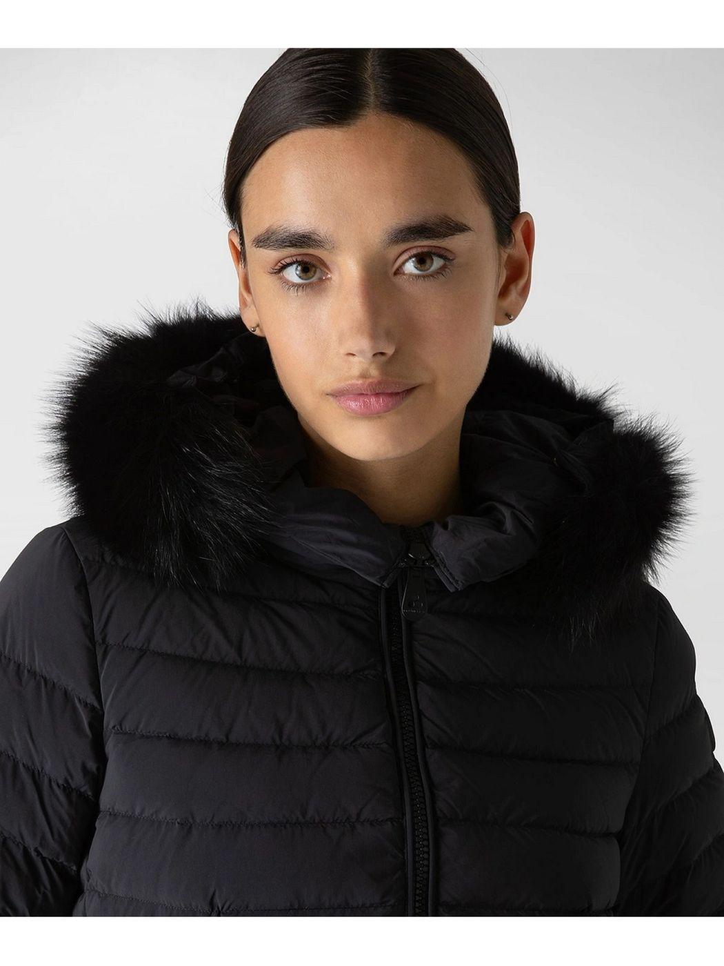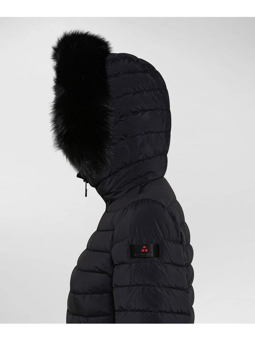 Piumino Peuterey 'TURMALET' in vera piuma. Cappuccio fisso e bordo con vera pelliccia removibile. Vestibilità slim. Chiusura con zip e doppio cursore. Tassche laterali con chiusura zip. Inserti elastici antivento ai polsi. Colore blu.