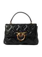 Borsa media PINKO Love Bag Puff in morbida nappa caratterizzata dal logo Love Birds impresso all over e completata da fibbia Love Birds Diamond Cut in galvanica antique gold