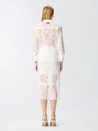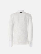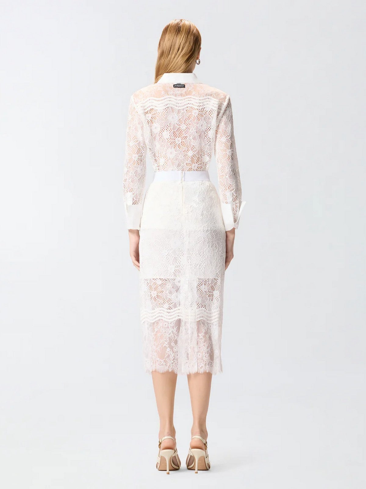 Camicia PINKO realizzato a partire da una base in tulle molto trasparente e impalpabile. Il pizzo rebrodé si distingue per l'effetto in rilievo, il pizzo chantilly, più fine e leggero, rifinisce le bordure, e il pizzo macramè impreziosisce le applicazioni ondulate della parte superiore.
