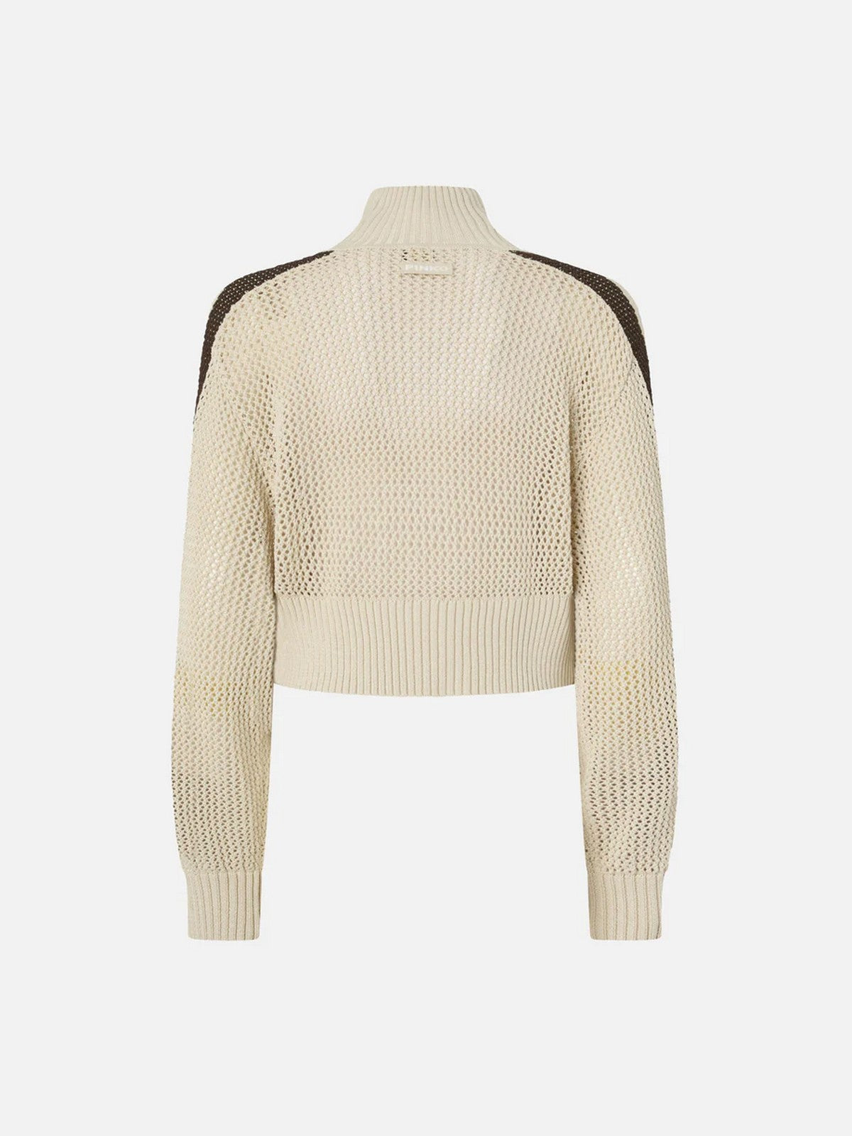 Felpa cropped PINKO realizzata in morbido e fresco misto cotone con lavorazione traforata effetto rete
