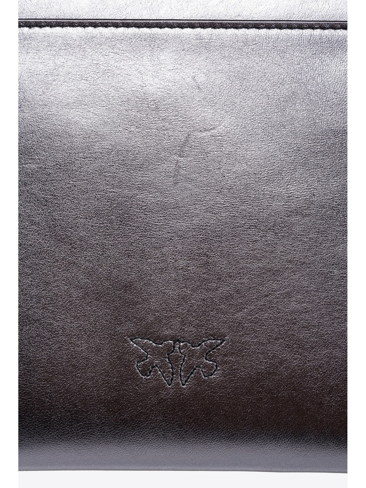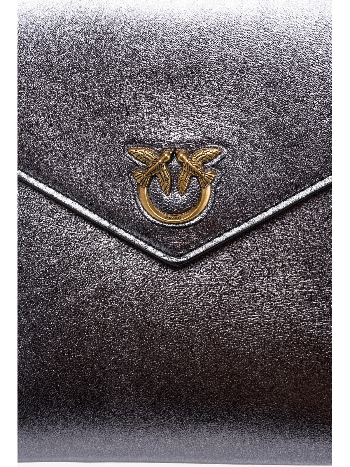 Borsa pochette PINKO Flat Bag in nappa laminata con design a busta. Chiusura cin patta e bottone automatico, personalizzata con placchetta logo Love Birds Diamond Cut davanti. Completo di cinturino per portata al polso.