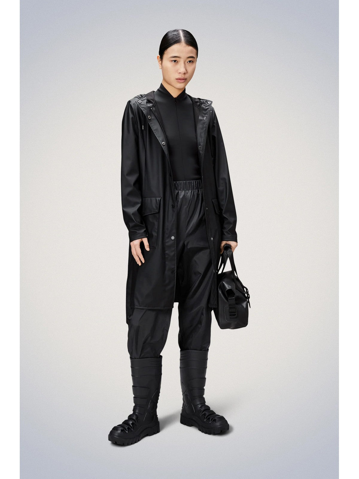 Giubbino RAINS impermeabile dal look sportivo realizzato in PU. Caratterizzato da una cerniera a due vie impermeabile, un cappuccio con cappellino incorporato e dettagli riflettenti sui cordoncini. Rifinito con un orlo regolabile, doppie tasche laterali saldate e polsini elasticizzati.