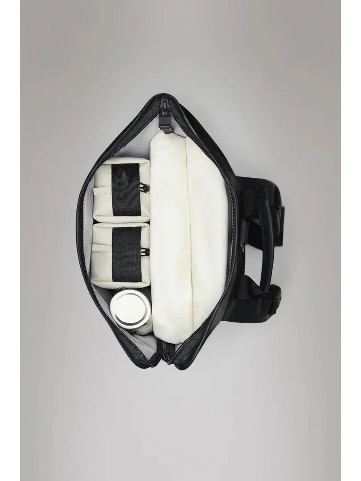 Parte superiore ripiegata con cerniera per un accesso ampio.