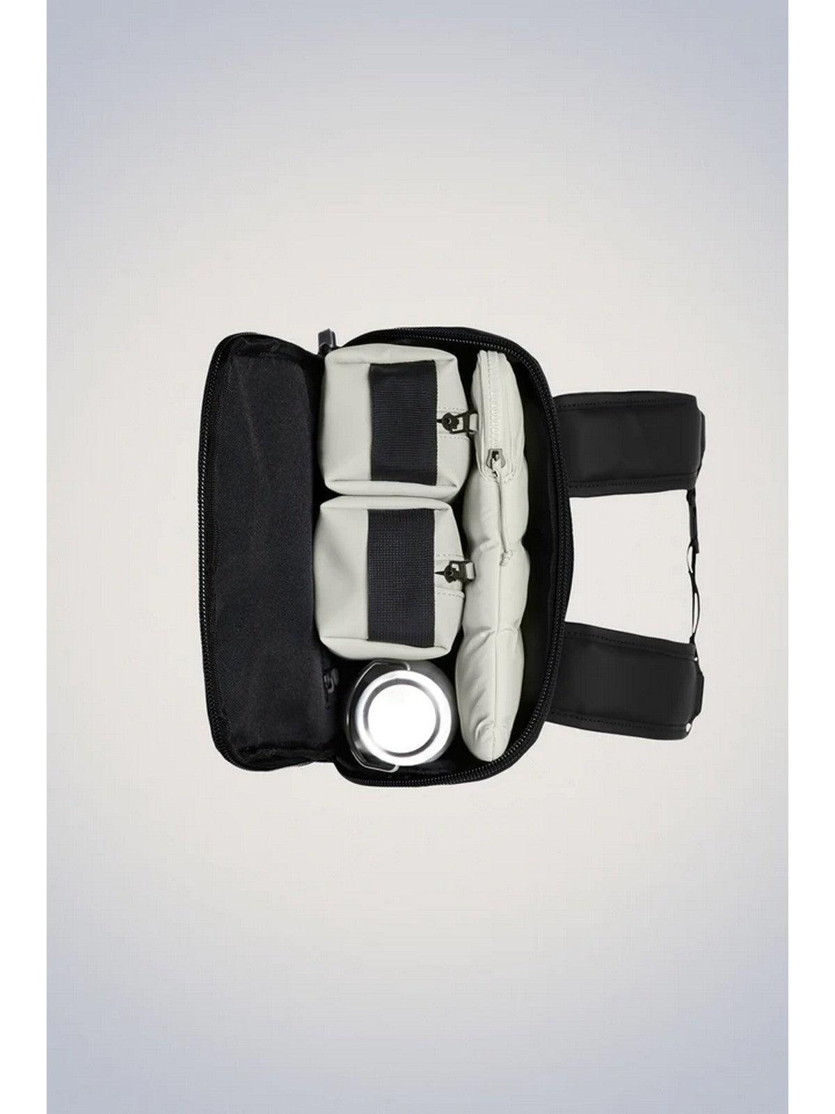 Zaino Cargo RAINS realizzato in tessuto PU impermeabile. Questo zaino impermeabile è dotato di cinghie di compressione regolabili, due tasche anteriori quadrate con chiusure a zip. Il modello include uno scomparto principale con zip ad accesso frontale, più una tasca interna imbottita abbastanza grande per un laptop da 13".