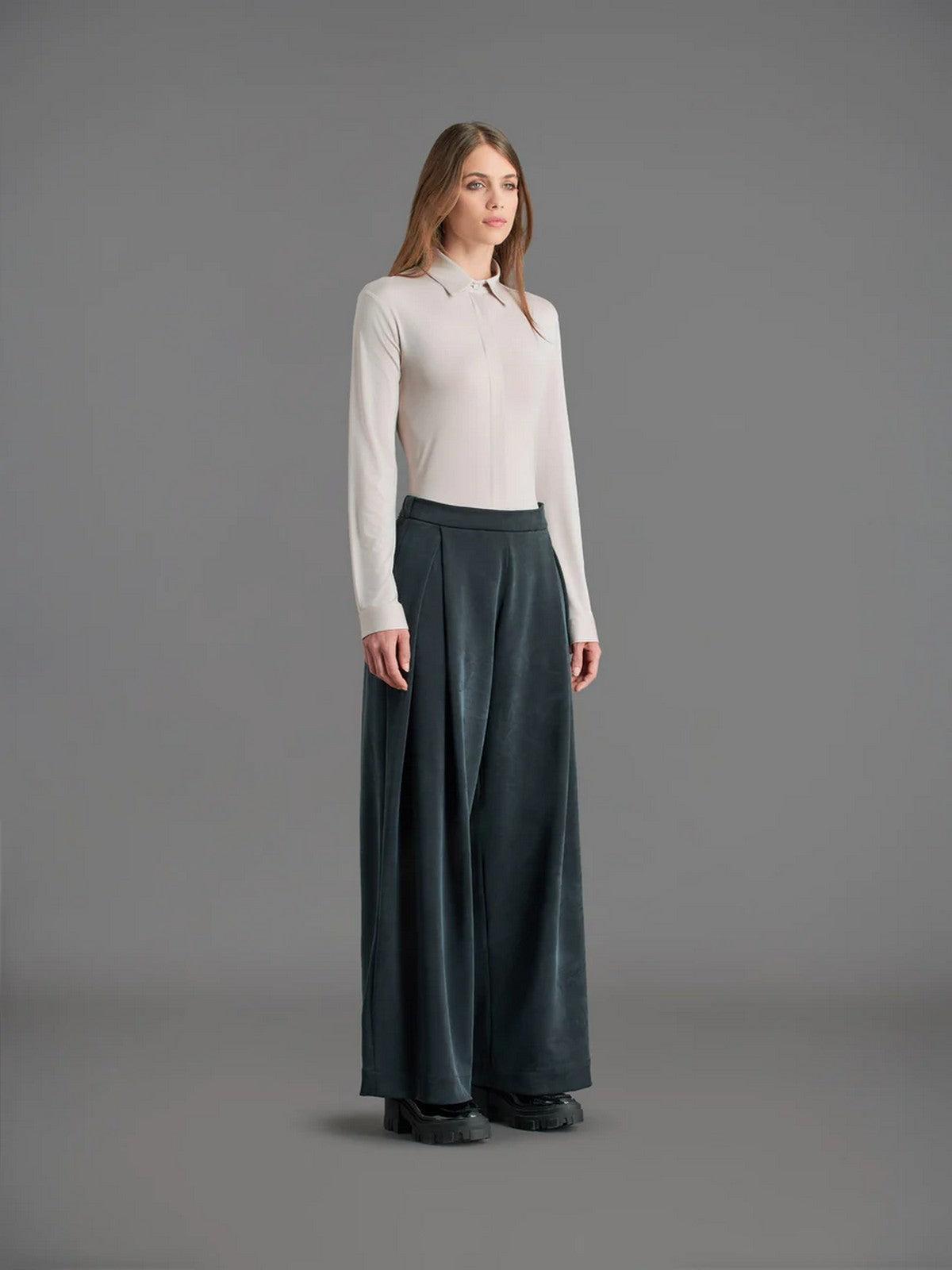 Camicia donna RRD realizzata in pregiato e fresco tessuto Cupro, dal touch morbido e setoso. Abbottonatura nascosta. Colletto classico e maniche lunghe con polsi.
