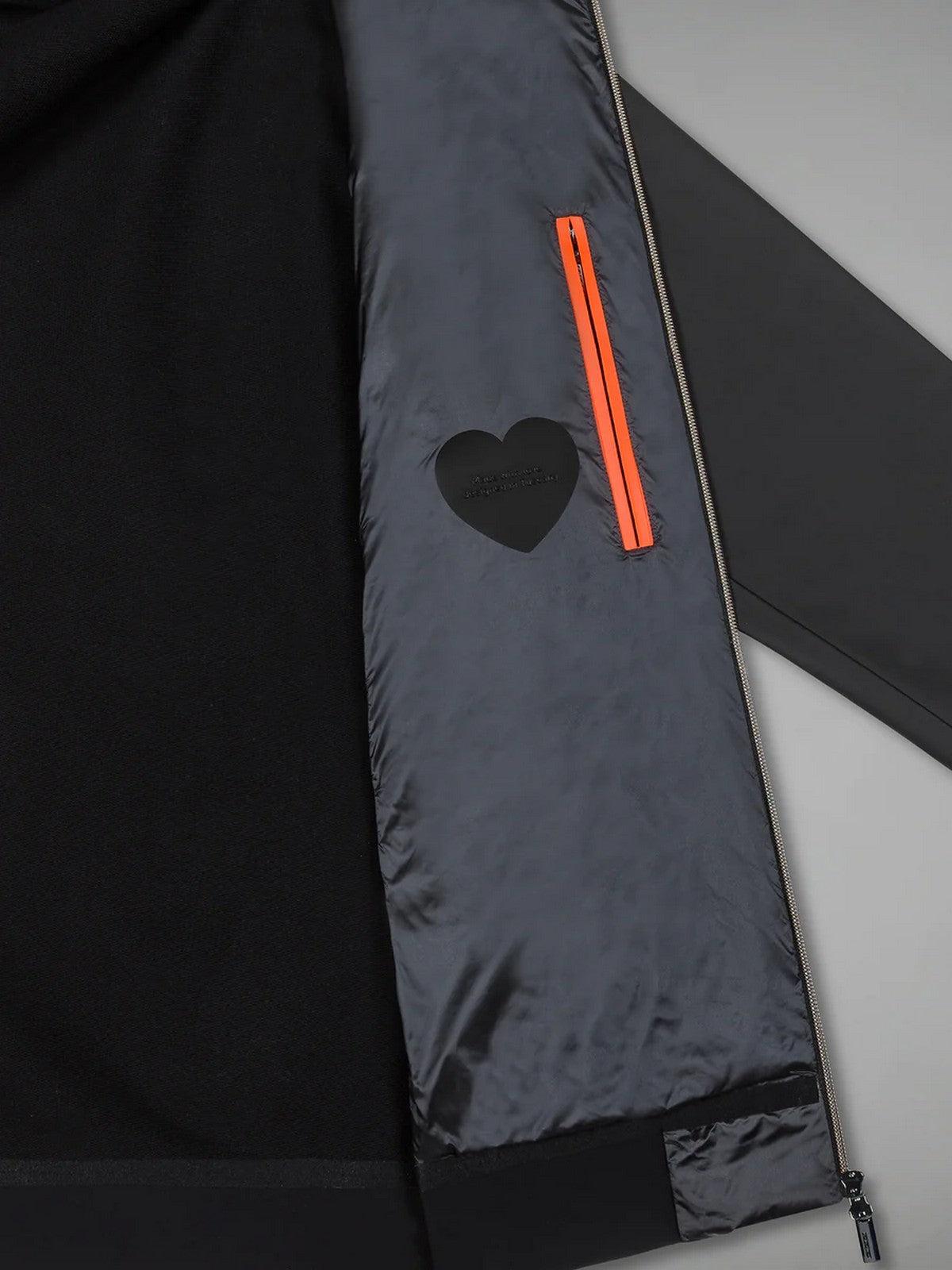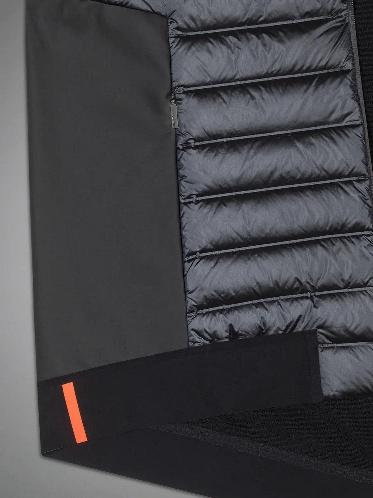 Giubbino RRD trapuntato a righe orizzontali sul fronte e in tessuto impermeabile sul retro. Interno con imbottitura in piuma d'anatra 90/10. Collo alto e maniche lunghe. Chiusura con zip integrale. Tasche sui lati zippate.