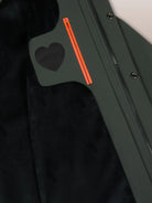 Interno con fodera in caldo ed elegante velluto ravvivato dal taschino con doppio filetto arancione, l'esclusiva tag a cuore "made with love, designed in Tuscany".