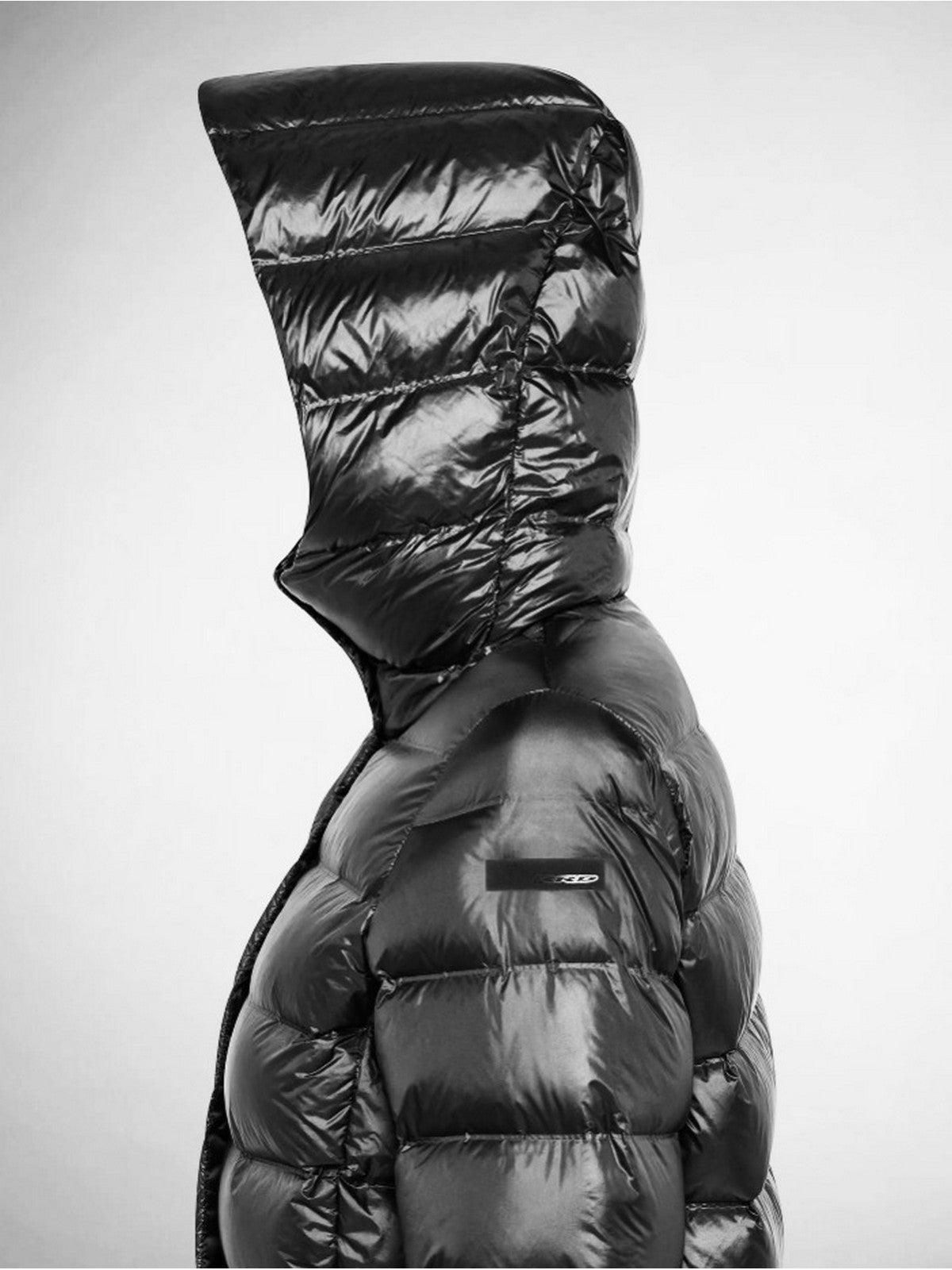 Piumino donna RRd realizzato in nylon lucido trapuntato a righe orizzontali. Ultralight all'indosso, leggerissimo garantisce tutto il calore del piumino d'anatra 90/10 a tecnologia totalmente stitchless, che non consente la fuoriuscita delle piume. Tasche laterali chiuse da zip invisibili. Chiusura con bottoni a pressione soft touch. Maniche lunghe. Collo alto con cappuccio fisso.
