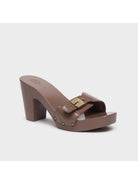 Sandalo SCHOLL Pescura Cameron High in pelle verniciata, caratterizzata da una raffinata suola in legno con linee più morbide e arrotondate