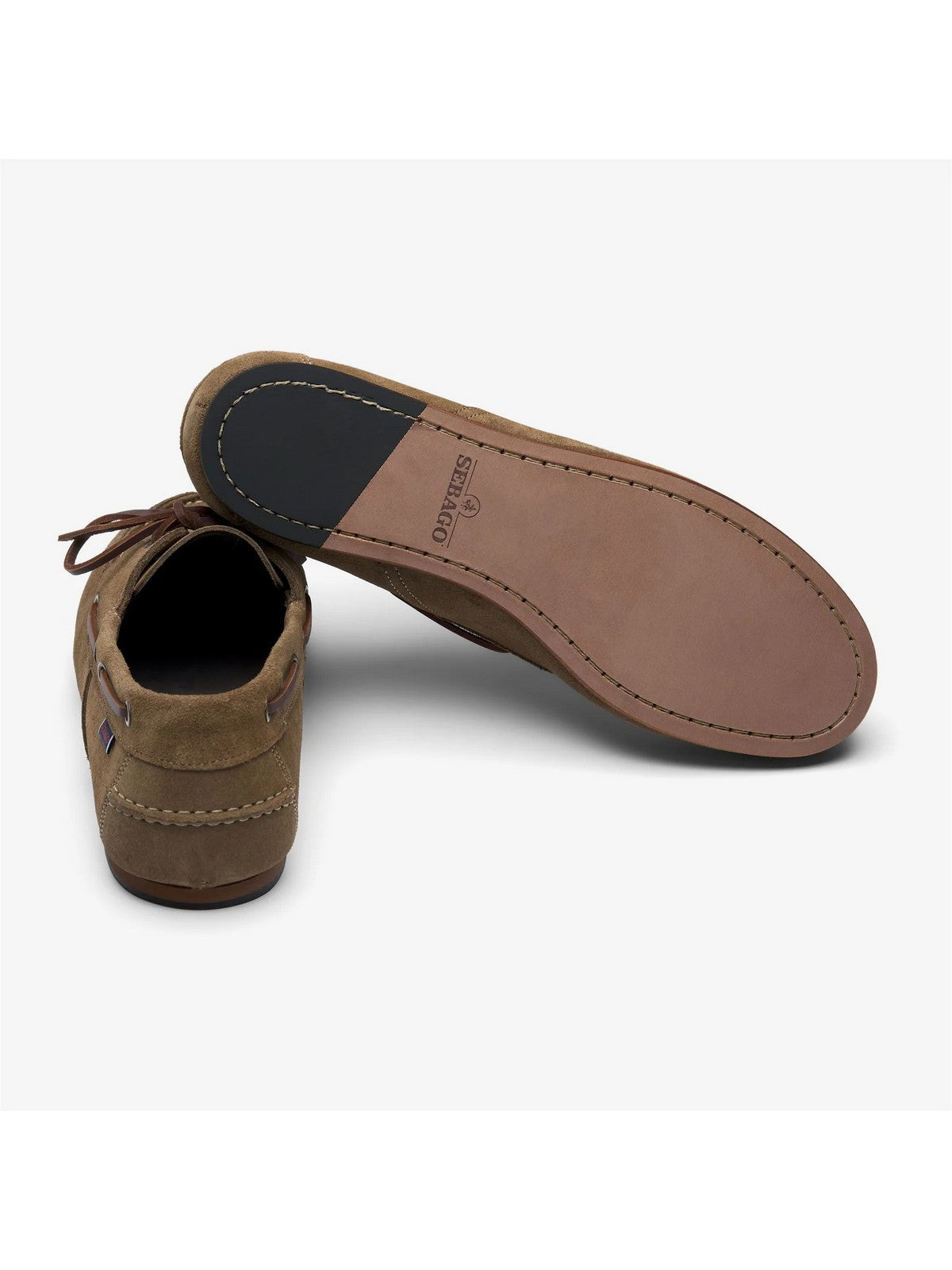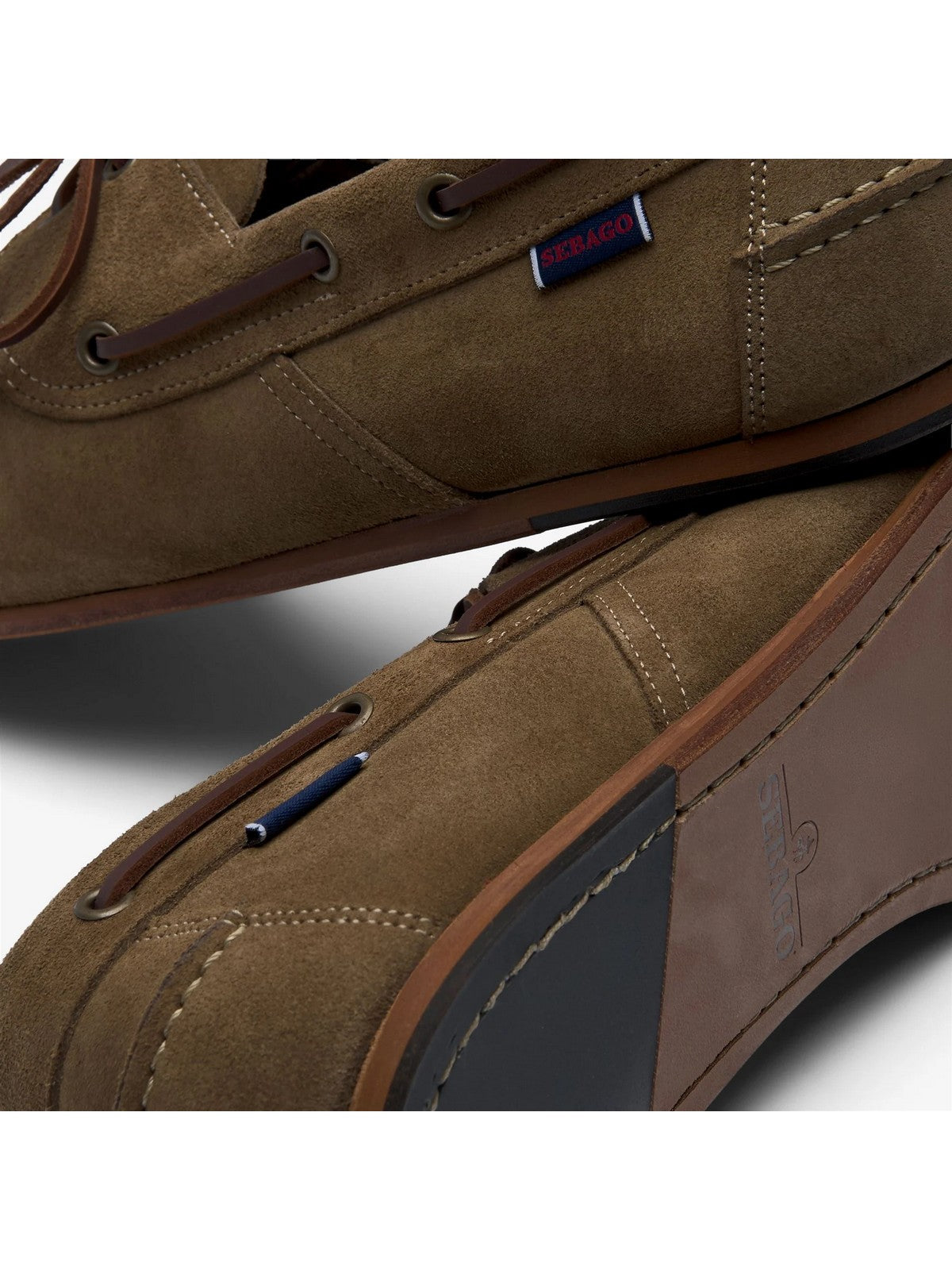 Mocassino SEBAGO realizzato in pelle scamosciata italiana con una texture estremamente ricca al tatto, trattata per conservare un sapore vintage autentico, cucita a mano con la migliore lavorazione artigianale.