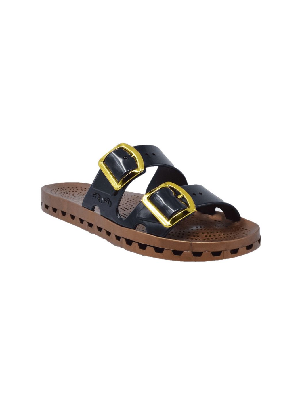 Ciabatte Sensi LA JOLLA PRESTIGIO in gomma con doppia fascia regolabile. La speciale suola in PVC ottenuta dall'accoppiamento meccanico di un sottopiede traforato, ad un fondo con canali di deflusso.