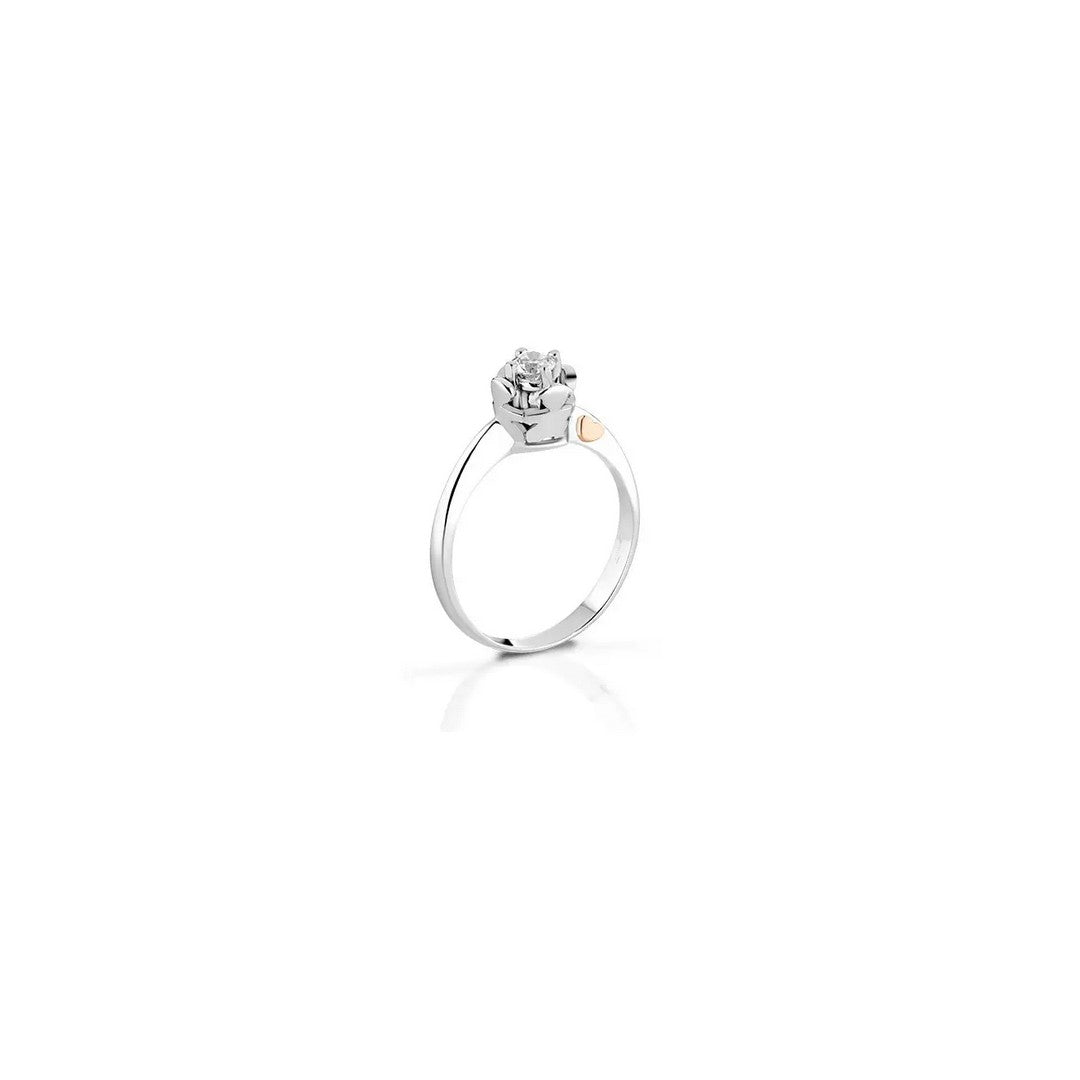 Anello solitario in oro bianco con castone bimbo e bimba modello cestino in oro bianco e diamante da ct 0,10 G VS o ct0,20 G VS.