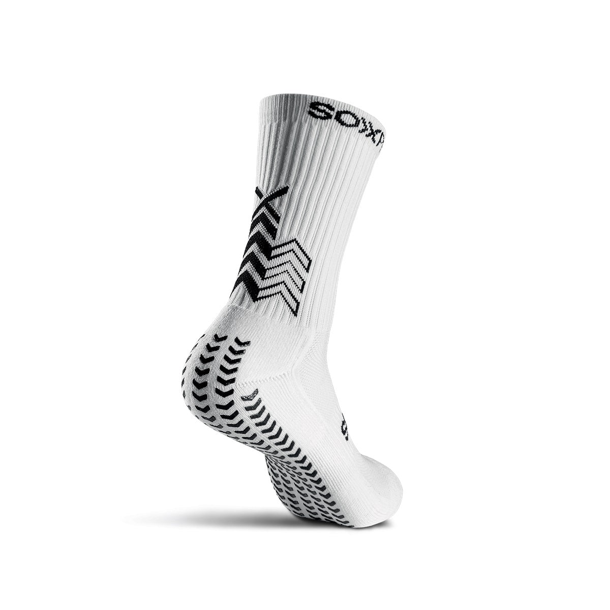 Calza tecnica antiscivolo SOXPro Classic imbottita con altezza a metà polpaccio. I calzini da calcio SOXPro Classic Soccer Grip sono progettati per un supporto durante tutte le tue prestazioni sportive, riducendo l'attrito tra la suola e la scarpa. Queste calze Soxpro sono progettate per offrire la massima trazione all'interno della scarpa, caratterizzate dalla presenza di cuscinetti in silicone antiscivolo a forma di freccia. Le frecce, presenti sulla pianta del piede e nella zona strategica del tallone, generano un'azione Grip:IN che non consente alcuno scivolamento all'interno della scarpa. Questo impedisce i fastidiosi movimenti laterali e verticali che si verificano all'interno della scarpa quando si pratica qualsiasi sport. Grazie all'utilizzo dell'innovativo tessuto DRY FLEX , le calze SOXPro Classic grip sono flessibili e traspiranti. Tessuto che garantisce, oltre alla traspirabilità e alla flessibilità, anche il massimo comfort e ventilazione. Salbini articoli tecnici per lo sport è rivenditore Soxpro .
